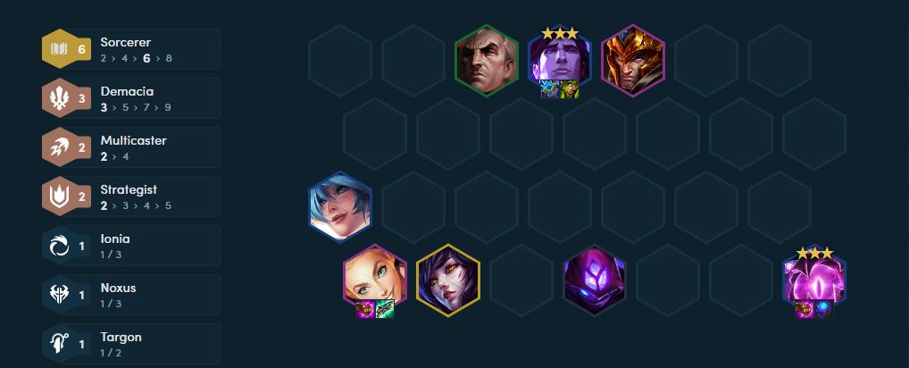 - Tộc/hệ: 6 Phù Thủy - 3 Demacia - 2 Pháp Sư Đa Chú - 2 Quân Sư