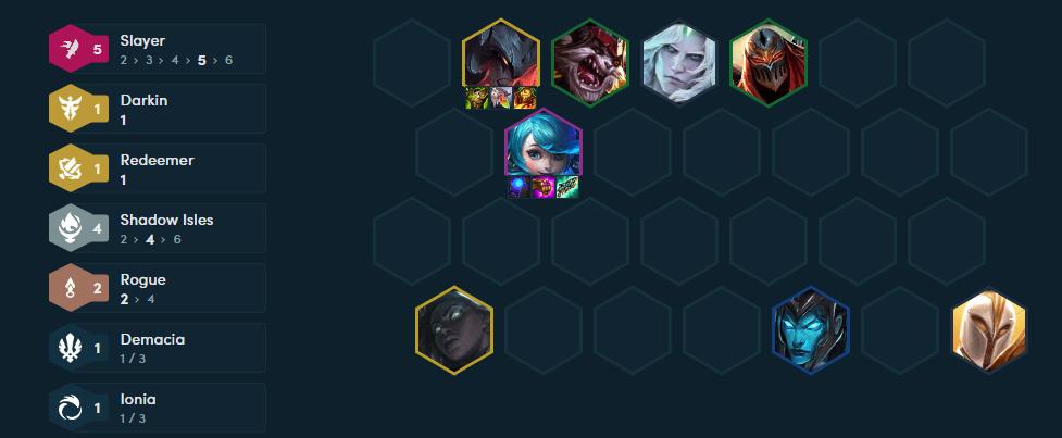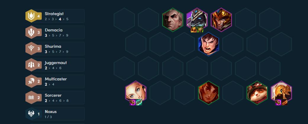 - Tộc/hệ: 3 Demacia - 3 Shurima - 4 Quân Sư - 2 Dũng Sĩ -2 Pháp Sư Đa Chú - 2 Phù Thủy