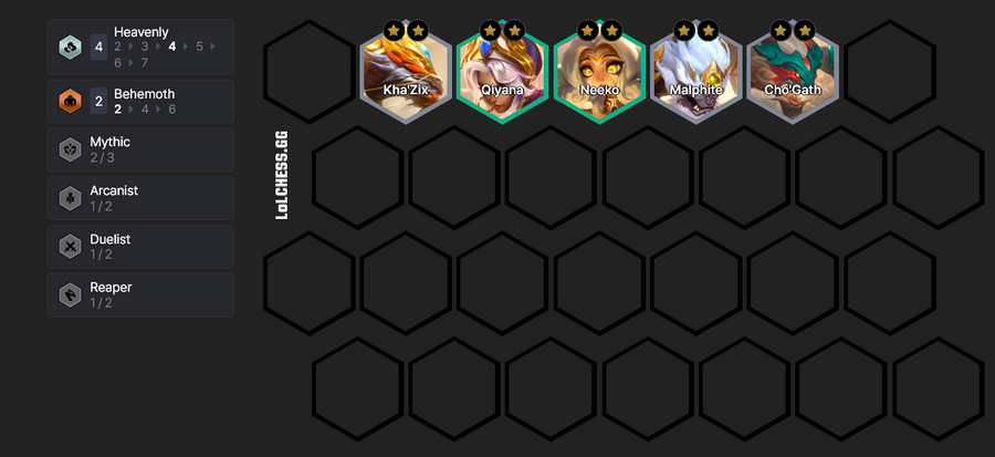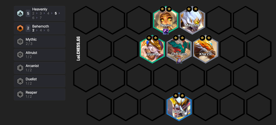 Bài này sau khi đã ổn định thì cứ chill chill lên cấp, cho thêm các tướng như Wukong để kích thêm Thiên Cung, Azir với Ornn để thêm tank và sát thương hàng sau, carry cuối bạn có thể chọn giữa Hwei hoặc Lissandra tùy thuộc kiểu chơi. Hwei sẽ có sát thương diện rộng với vẽ tướng, còn Lissandra thì giúp hack đồ để bù lại việc bạn không có item chuẩn cho carry, chọn cái nào là tùy thuộc ở bạn hay tướng nào ra trước.