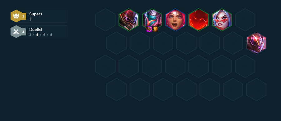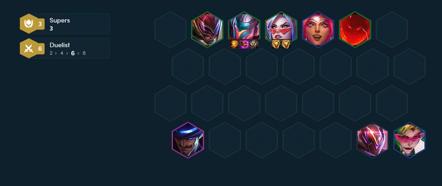 Để có thể tối đa hóa sức mạnh của đội hình này, bạn nên có một ấn hoặc trái tim Song Đấu, sau đó cho Vayne làm carry phụ sát thương cho Yasuo về late game. Như vậy chúng ta vừa kích được mốc 6 Song Đấu, cũng như còn thừa một slot để cho thêm một tướng đa dụng vào đội hình.