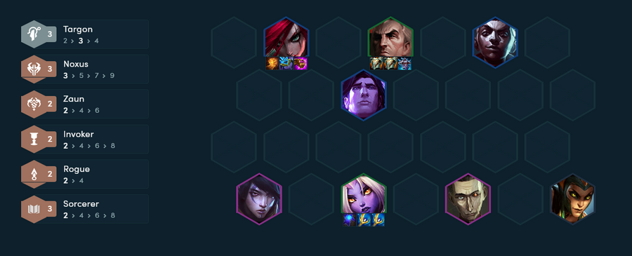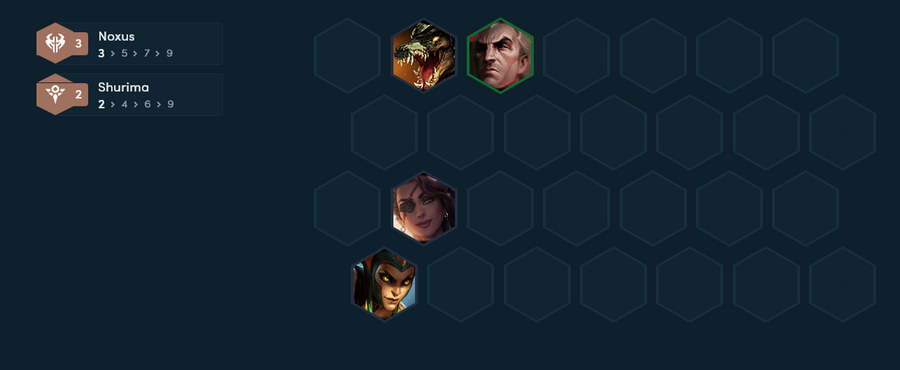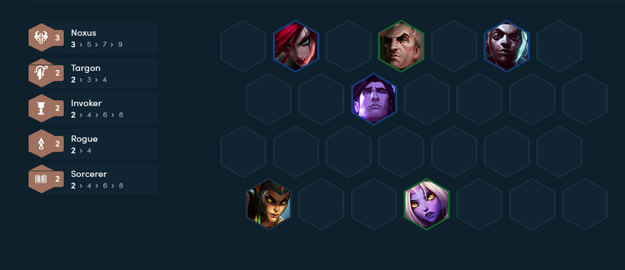 Do có thể lấy form Noxus sớm, nên bài này không hề yếu và hoàn toàn có thể đánh chuỗi thắng nếu bạn đủ may mắn. Đây là bài đánh bằng tempo, nên nếu trong lobby yếu lúc đầu và bạn có Cassiopeia 2 sao, đừng ngần ngại đẩy lên cấp 5 sau vòng đi chợ để tiếp tục lăn cầu tuyết có chuỗi thắng. Trong trường hợp ngược lại thì bằng mọi giá phải có chuỗi thua 5+, để có kinh tế mà roll sau 3-2.