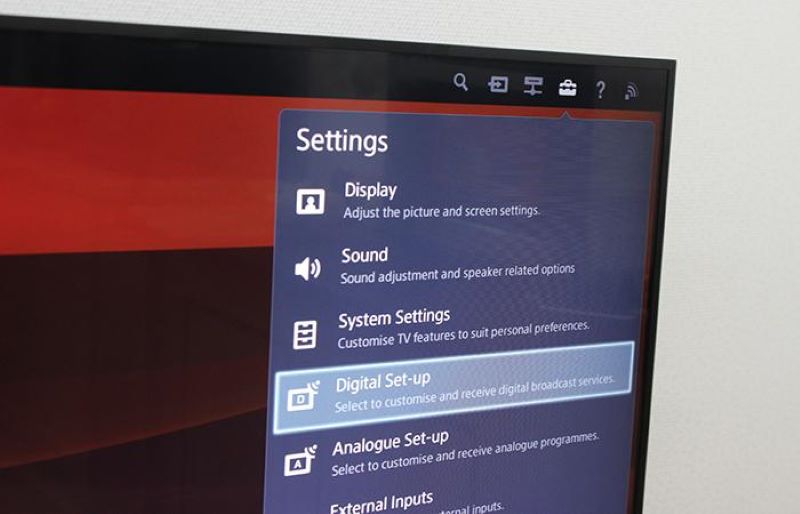 Bên cạnh cách trên, bạn còn kiểm tra được bằng cách truy cập vào phần Cài đặt ( Setting) và tìm kiếm mục Digital (Digital Set- up). Nếu bạn vào phần Cài đặt mà thấy xuất hiện mục Digital thì tivi đó chính là tivi được hỗ trợ DVB-T2.