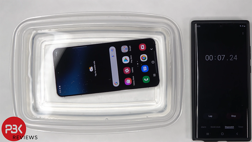 Để kiểm tra độ bền trên chiếc flagship mới nhất của Samsung, YouTuber PBK Reviews đã thực hiện một bài kiểm tra giống như Jerryrigeverything trên Galaxy S22 tiêu chuẩn.