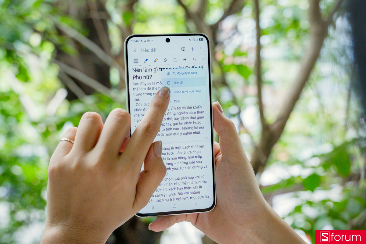 Hay còn có thể tiết kiệm thời gian bằng trí tuệ nhân tạo. Những tính năng "đáng đồng tiền bát gạo" như AI Note Assist giúp tóm tắt các nội dung dài dằng dặc chỉ trong vài giây, hay Khoanh tròn để tìm kiếm trên Google giúp các nàng tra cứu nhanh bất kỳ món đồ thời trang hay địa điểm du lịch nào xuất hiện trên màn hình.