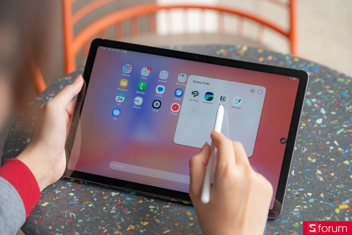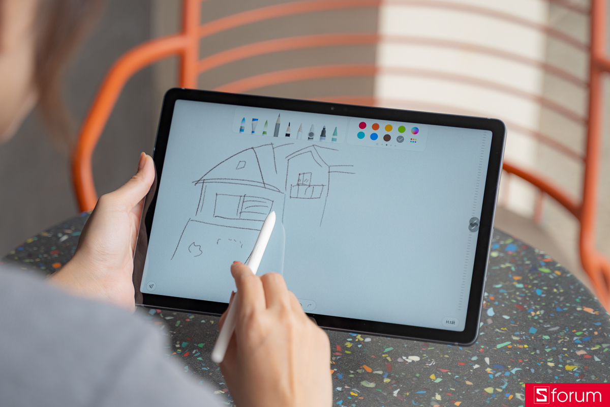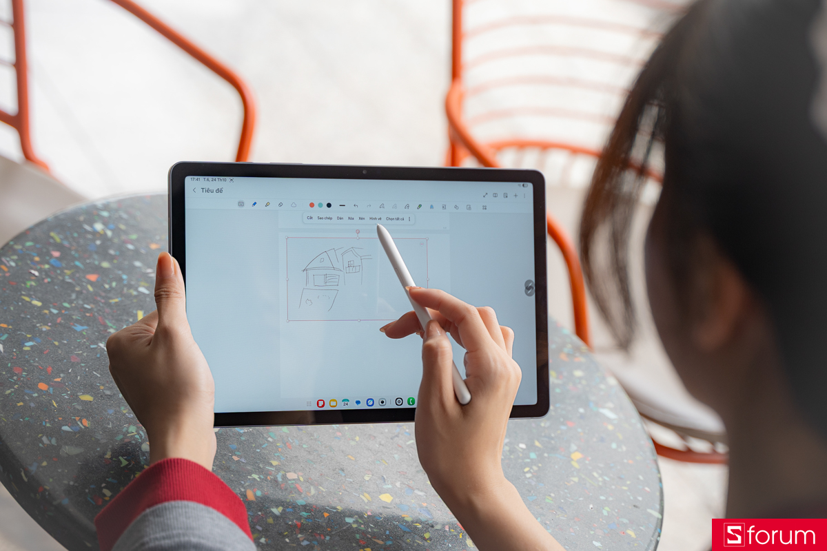 Galaxy Tab S10 Lite không chỉ hỗ trợ học tập mà còn là công cụ sáng tạo tuyệt vời cho những ai yêu thiết kế và nghệ thuật. Chỉ với chiếc S Pen trong tay, bạn có thể phác thảo nhanh ý tưởng logo, poster hay bất kỳ concept nào nảy ra trong đầu với độ chính xác và độ nhạy cao hơn hẳn thế hệ trước.