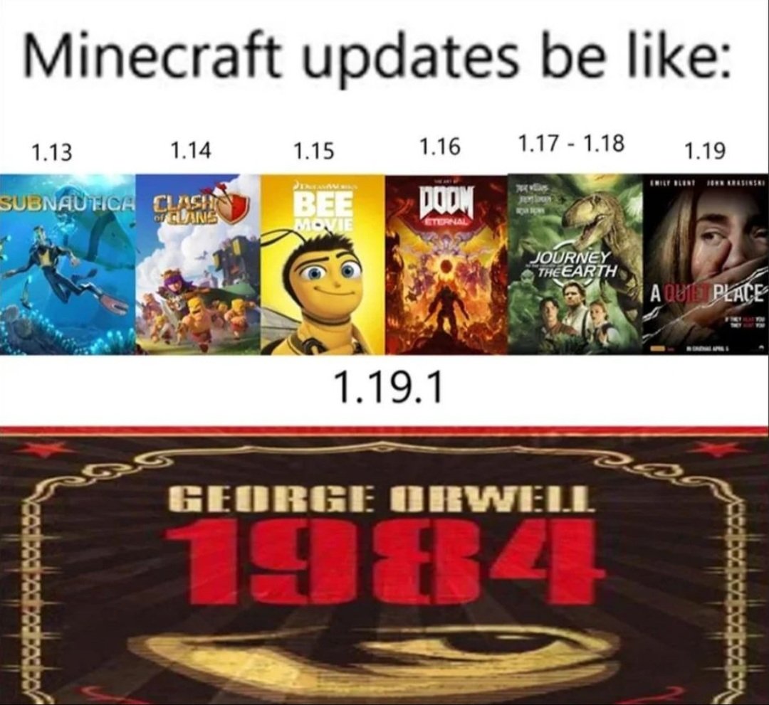 Có số hiệu 1.19.1 (hay 1.19.84 theo số hiệu trước đó), phiên bản này bị game thủ so sánh với quyển tiểu thuyết 1984 của George Orwell, về chủ nghĩa toàn trị, giám sát hàng loạt và đàn áp công chúng.Lý do của điều này là bởi trong patch 1.19.1, Mojang và Microsoft đưa vào Minecraft một tính năng mới là tố cáo chat. Mục đích của họ là tốt: rất có thể tính năng này khởi đầu từ những kẻ toxic hay chửi bới, xúc phạm người khác hay tệ hơn nữa là những “con gấu” thích nhắm vào trẻ em trong game. Cộng đồng game tủ Minecraft phân thành hai, một bên là những người ủng hộ tính năng này, và bên kia chỉ trích nó.