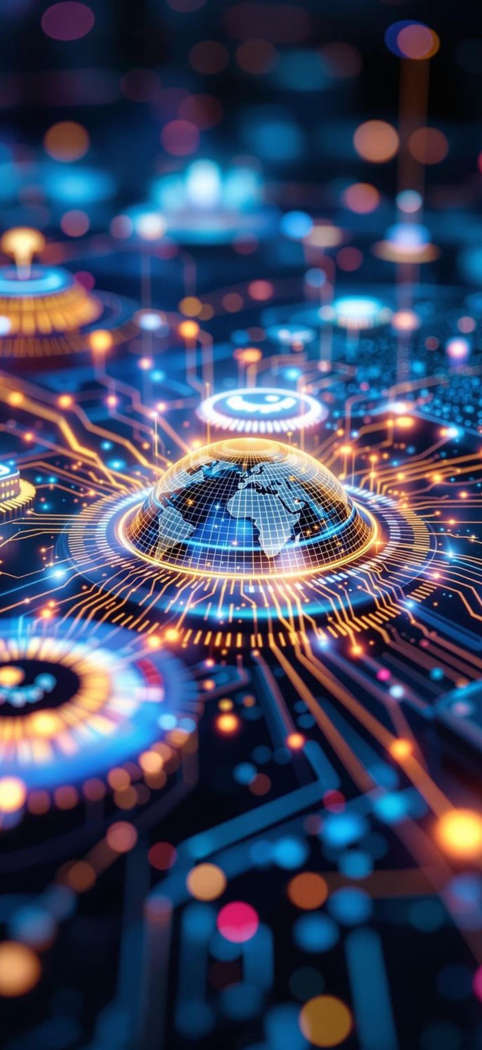 Cyberpunk, mạch điện tử, thành phố tương lai hay ánh sáng neon xanh tím mang lại cảm giác cực kỳ hiện đại. Các hiệu ứng ánh sáng và chi tiết kim loại hiển thị rất rõ, tạo chiều sâu thị giác mạnh. Nếu yêu phong cách futuristic, đây là nhóm hình nền không nên bỏ qua.