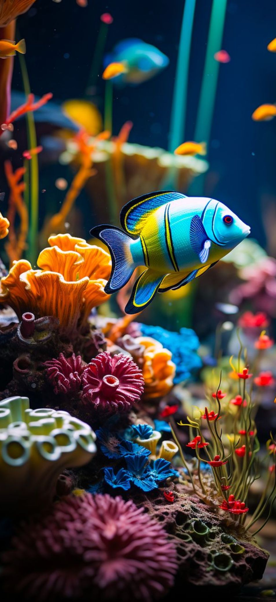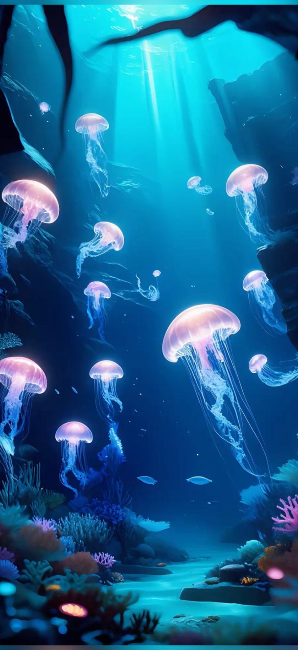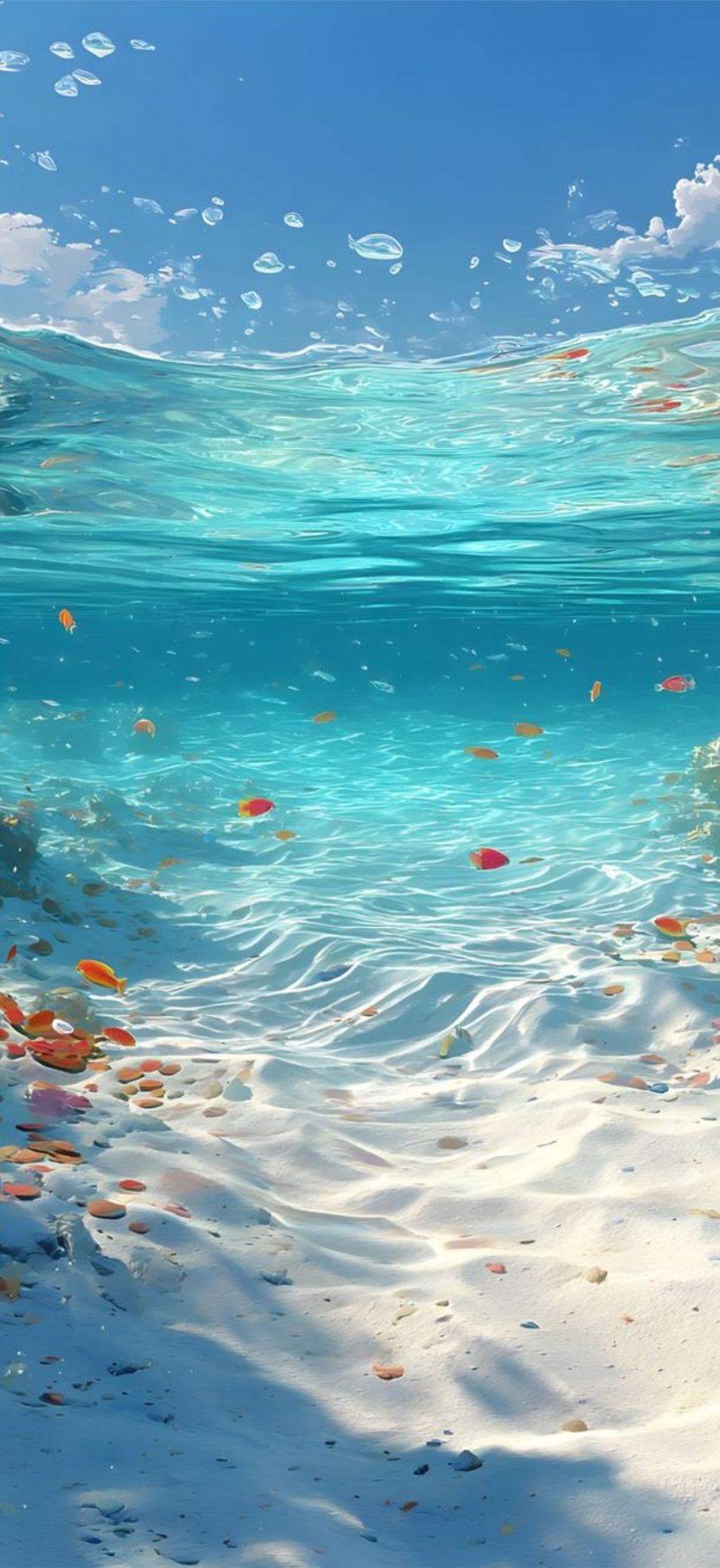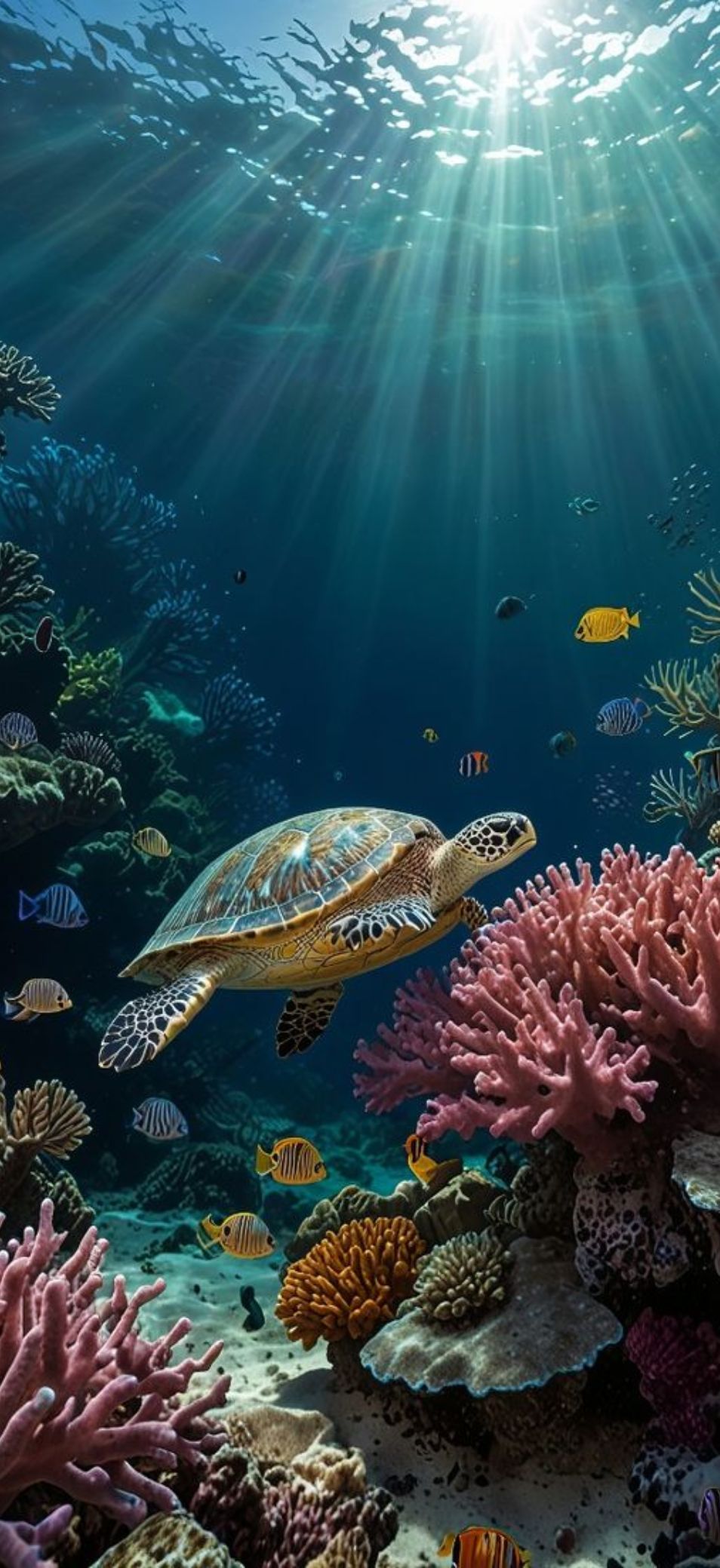 Sóng biển xanh biếc, mặt nước phản chiếu ánh nắng hay khung cảnh dưới đáy đại dương đều tạo hiệu ứng thị giác rất đã mắt. Các gam xanh và ánh sáng được tái hiện rõ ràng, giúp màn hình trông sâu và mát hơn. Chủ đề này phù hợp với những ai yêu sự phóng khoáng và tự do.