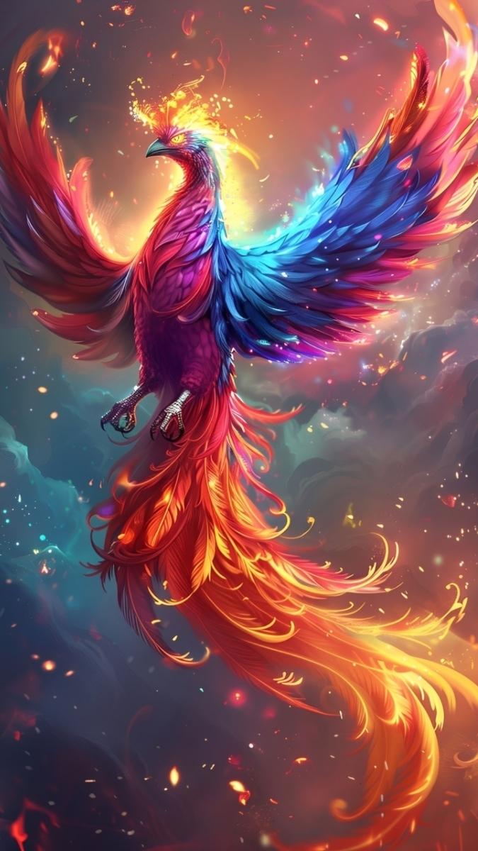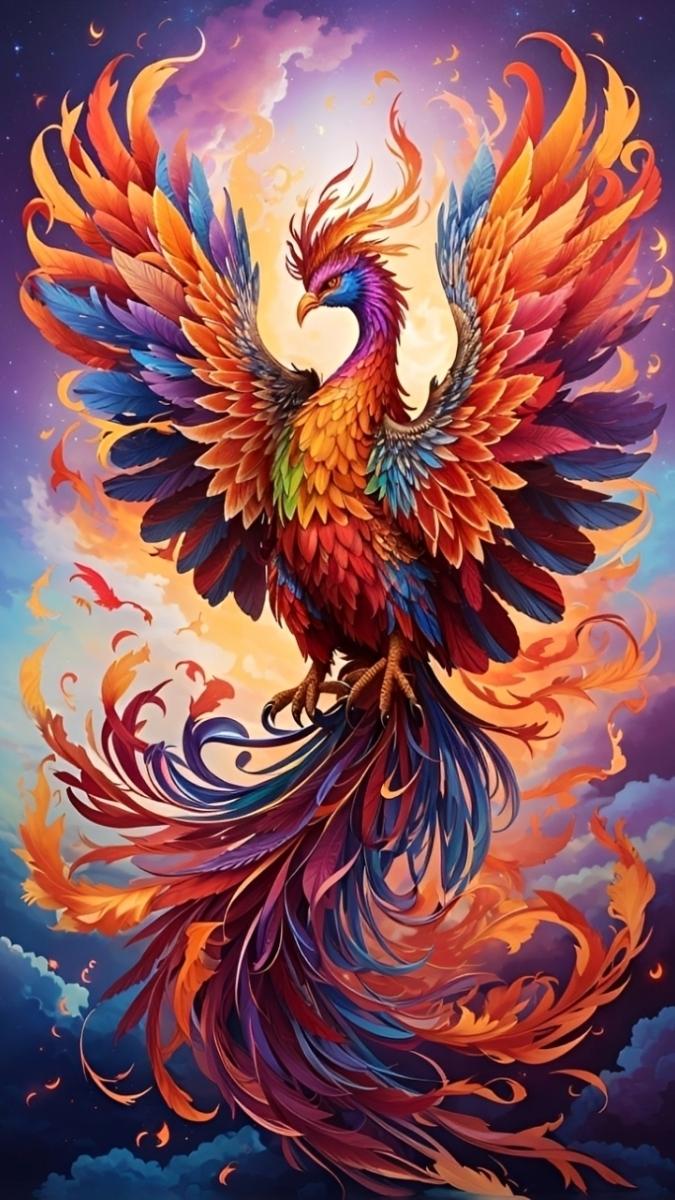 Phong cách anime biến hóa phượng hoàng thành hình ảnh hoạt hình rực rỡ, với màu sắc sống động và biểu cảm mạnh mẽ. Phong cách anime thích hợp cho fan của các sản phẩm truyện tranh Nhật Bản, mang đến sự sinh động và độc đáo, giúp màn hình điện thoại và máy tính thêm cá tính.