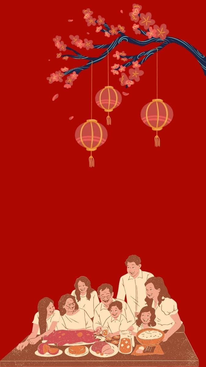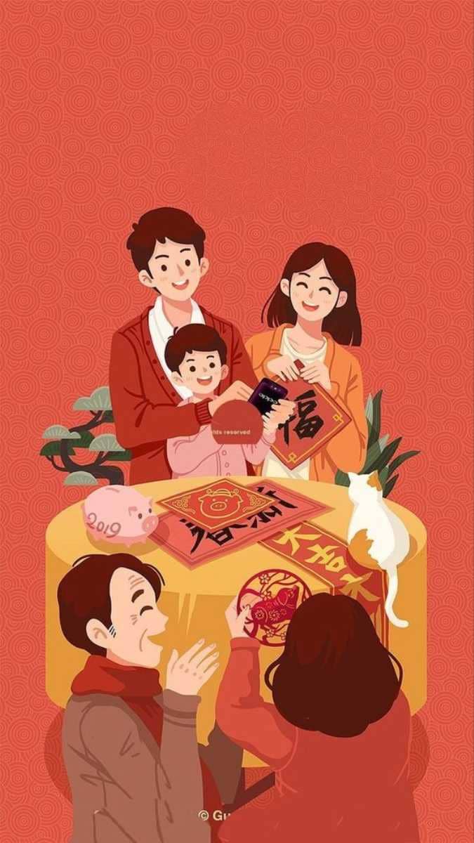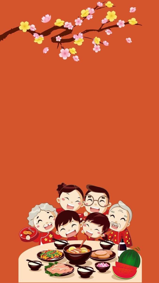 Hình nền Tết cute gia đình sum vầy