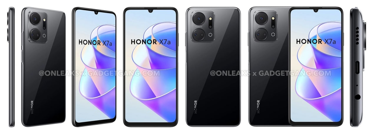 Theo chuyên gia rò rỉ OnLeaks, Honor X7a sẽ có hai tuỳ chọn màu sắc là Xanh (Ocean Blue) và Đen (Midnight Black). Máy sử dụng thiết kế màn hình 'giọt nước' để chứa camera selfie. Trong khi đó, cụm 4 camera sau được nằm gọn trong mô-đun hình chữ nhật, bao gồm cảm biến chính 50MP, camera góc siêu rộng 5MP, camera macro 2MP và camera đo chiều sâu 2MP.