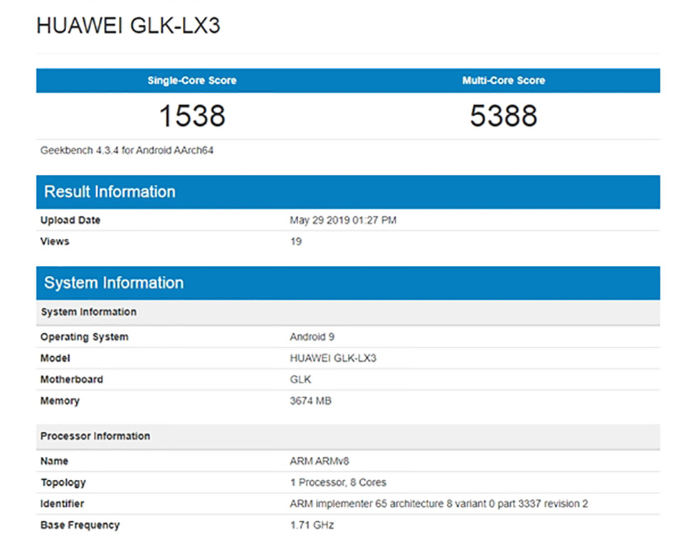Theo danh sách Geekbench, Huawei GLK-LX2 được liệt kê với 6GB RAM thuộc về dòng Nova, nên rất có thể đây chính là chiếc Huawei Nova 5i. Điều đáng nói là một điện thoại thông minh mới của Huawei có số model GLK-LX3 gần đây cũng đã thông qua Geekbench với điểm số tương tự nhưng nó có 4GB RAM. Điều này cho thấy chiếc Nova 5i sắp tới sẽ có hai phiên bản cấu hình khác nhau với RAM 4GB và 6GB.