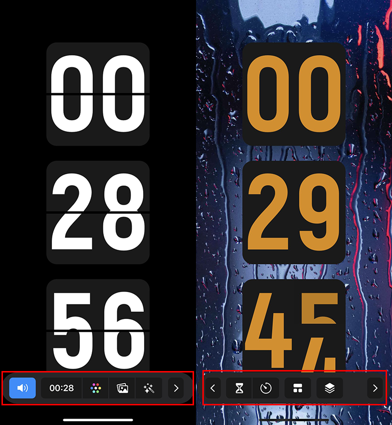 Bước 6: Ứng dụng cung cấp cho bạn các tùy chọn giúp bạn có thể tùy chỉnh đồng hồ sạc pin trên iPhone của mình như: Màu sắc con số, hình nền, hiệu ứng nhảy số, đồng hồ đếm ngược... Thật thú vị phải không nào!
