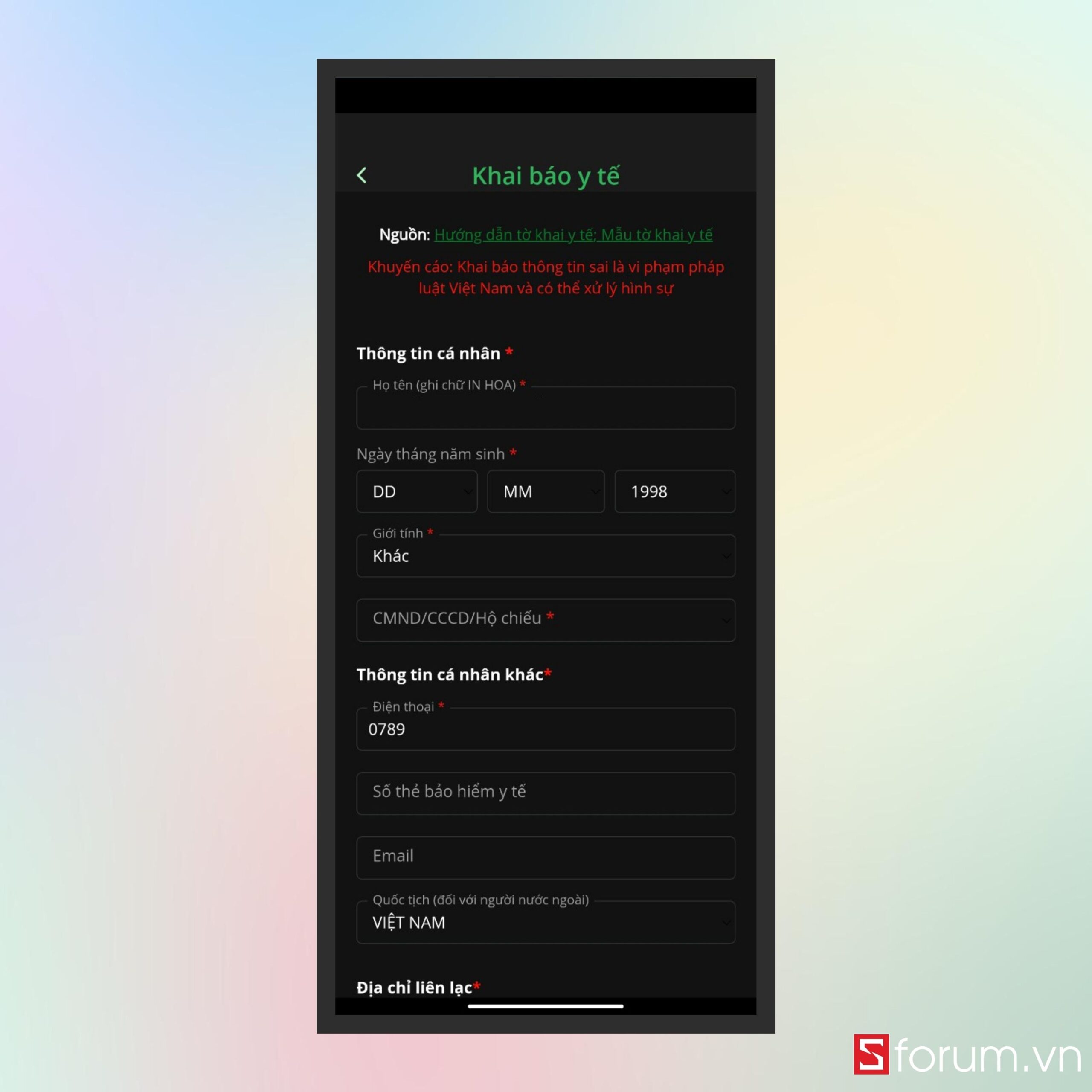 Bước 5: Bạn điền tất cả thông tin cá nhân vào tờ khai y tế bao gồm họ và tên, điện thoại, CMND, địa chỉ nhà,... Sau khi xong, bạn nhấn chọn Gửi tờ khai để hoàn tất khai bao y tế.
