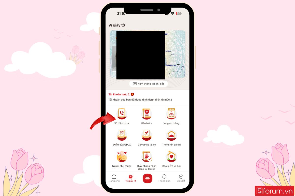Bước 2: Truy cập tính năng ví giấy tờ