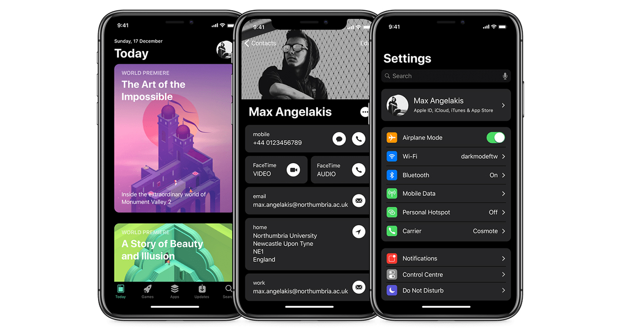 Theo Bloomberg, iOS 13 sẽ được tích hợp tính năng Dark Mode giúp biến toàn bộ giao diện phần mềm sang tông màu tối, giúp bảo vệ mắt người dùng tốt hơn khi sử dụng thiết bị vào ban đêm. Trước đó, Apple đã mang tính năng này lên hệ điều hành macOS 10.14 Mojave dành cho máy tính Mac, chính vì vậy, nhiều người đã mong chờ hãng sẽ làm điều tương tự với iOS.