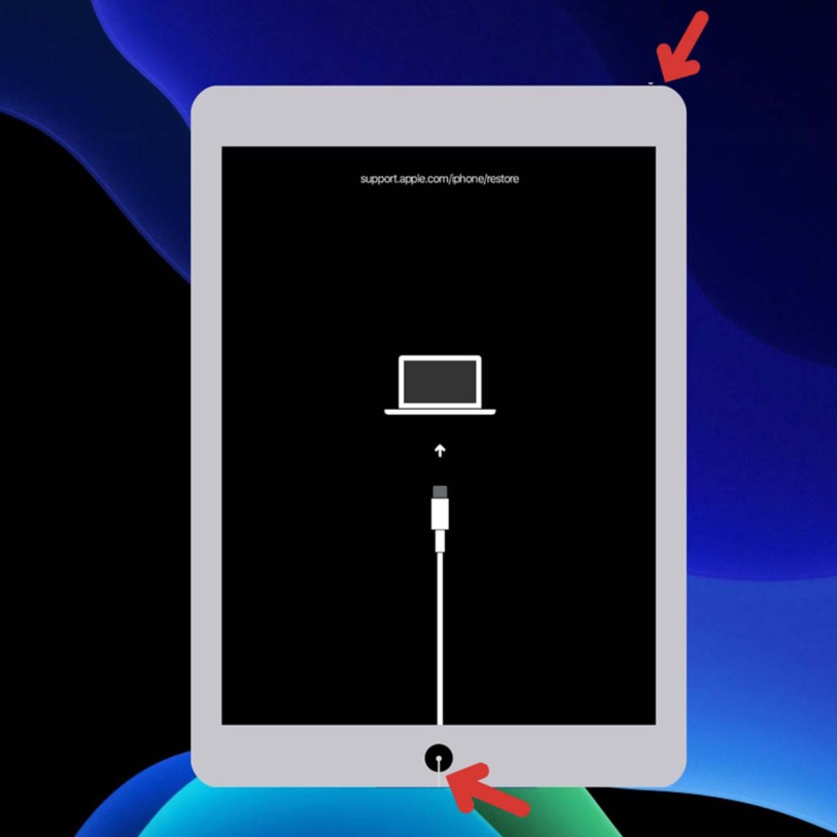 - Nếu iPad có nút Home: Nhấn giữ đồng thời nút Home và nút nguồn cho đến khi màn hình iPad hiển thị Recovery Mode.