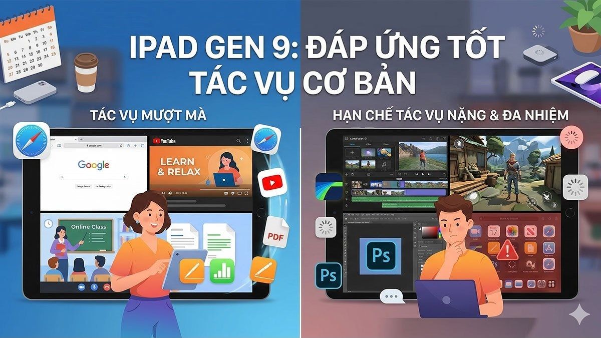 Nhìn chung, iPad Gen 9 vẫn đáp ứng tốt nhu cầu cơ bản, nhưng nếu xét về hiệu năng lâu dài và khả năng còn được dùng trong vài năm tới, các dòng mới như Gen 10 hay iPad Air sẽ có lợi thế rõ rệt hơn.