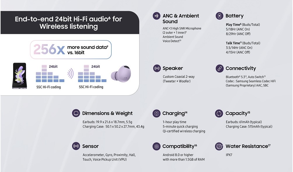 Dù là họp hành hay giải trí, bạn cũng cần một chiếc tai nghe xịn sò để đảm bảo cảm xúc ổn định cả ngày dài đúng không nào? Vậy hãy để Galaxy Buds2 Pro cùng bạn “cháy” cả ngày dài với âm thanh chất lượng cao 24bit. Giờ đây âm thanh trở nên chân thực và chi tiết hơn cho từng khoảnh khắc của bạn luôn trọn vẹn.