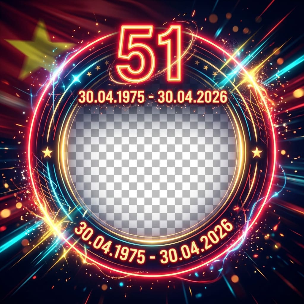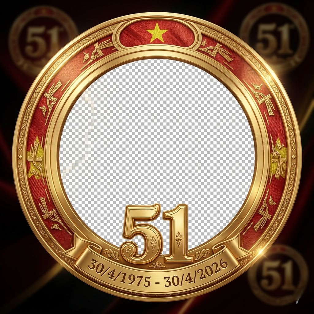 Ví dụ prompt: "Tạo khung avatar kỷ niệm 51 năm Giải phóng miền Nam, nền đỏ, có cờ đỏ sao vàng, số 1975 - 2026 nổi bật, phong cách trang trọng nhưng hiện đại, bố cục đơn giản để chèn ảnh chân dung vào giữa."