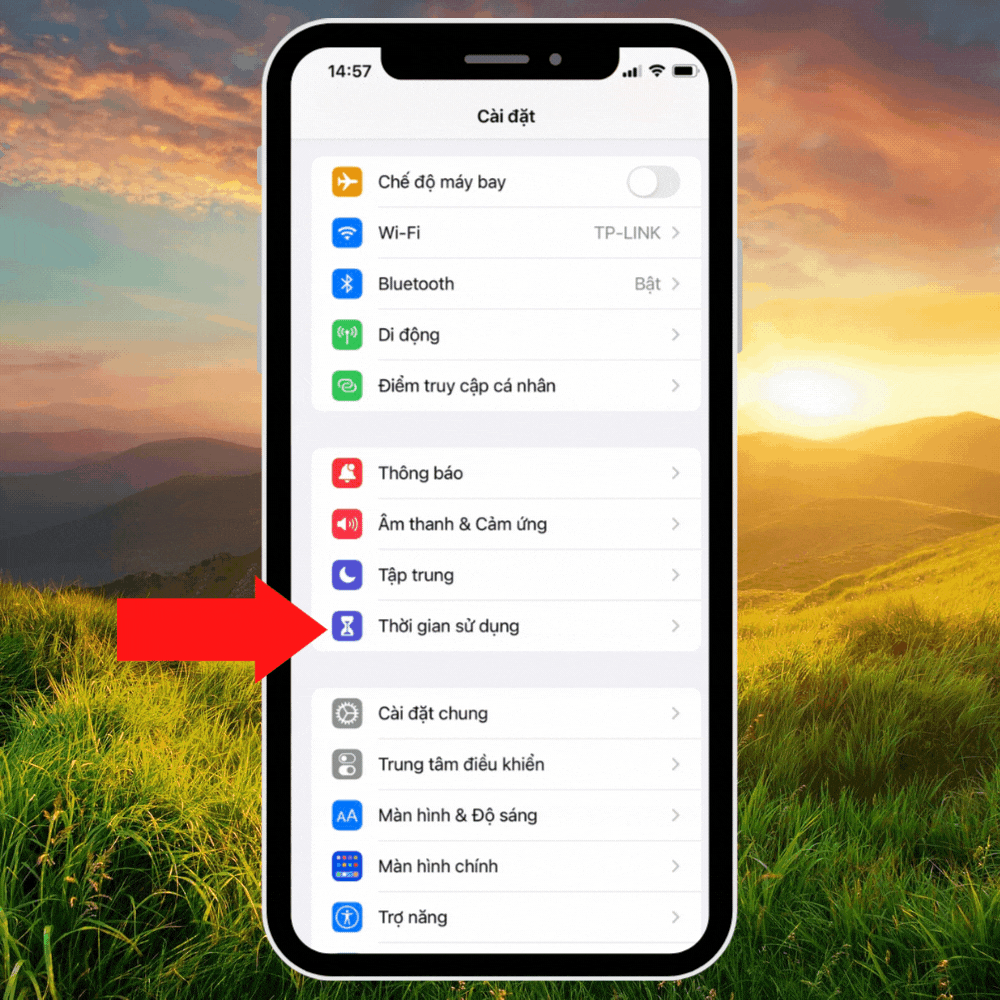 Bước 2: Tiếp theo bạn ấn vào mục Thời gian sử dụng và Bật thời gian sử dụng.