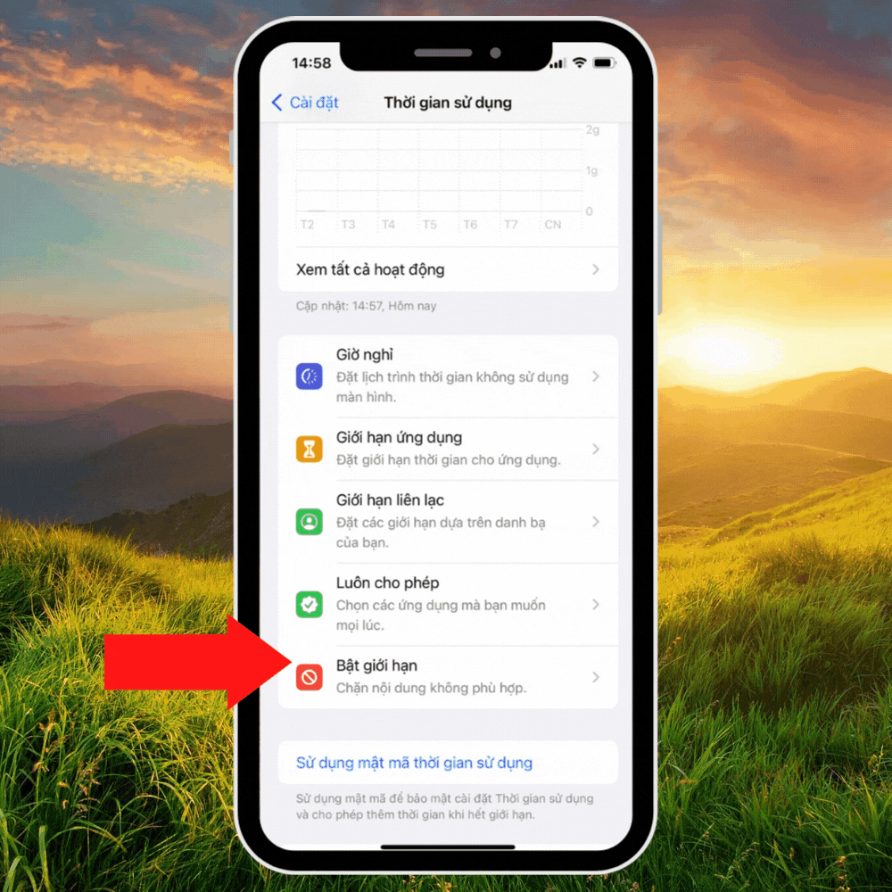 Bước 3: Ở bước này, bạn khởi động Bật giới hạn và chọn mục Giới hạn nội dung.