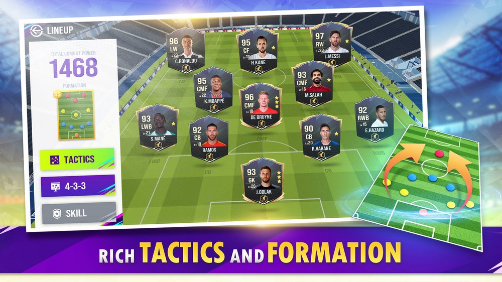Khi trải nghiệm Legendary Football người chơi không chỉ trở thành một cầu thủ xuất sắc, mà bạn còn phải đảm nhiệm vị trí của một huấn luyện viên tài ba. Với mỗi đội hình bao gồm 11 cầu thủ khác nhau, người chơi vừa phải cần nhắc lựa chọn và sắp xếp vị trí hợp lý để các cầu thủ có thể phát huy được tối đa sức mạnh của mình, cũng như vừa phải lựa chọn triển khai đội hình tổng thể phù hợp với nhiều chiến thuật khác nhau.