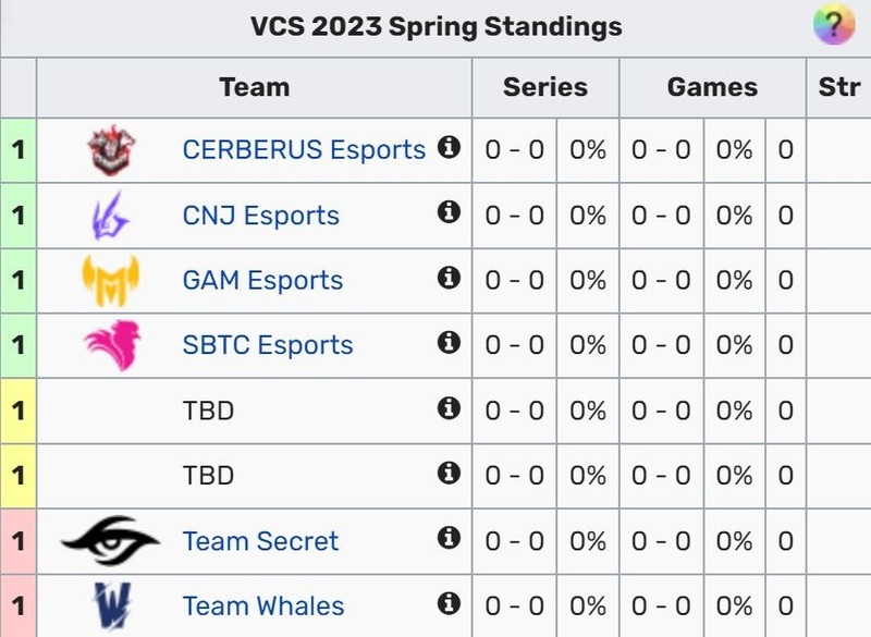 Như vậy, hiện chỉ có 6 đội tuyển xuất hiện tại VCS Mùa Xuân 2023 gồm: CES, CNJ, GAM, SE, TS và TW. Số phận của đội tuyển ASE và GE vẫn còn nhiều bỏ ngỏ. Vậy liệu sẽ có những nhân tố mới nào xuất hiện và VCS Mùa Xuân 2023 sẽ kịp khởi tranh vào tháng 2? Tất cả sẽ phải chờ đợi những thông báo chính thức từ BTC giải đấu rồi!