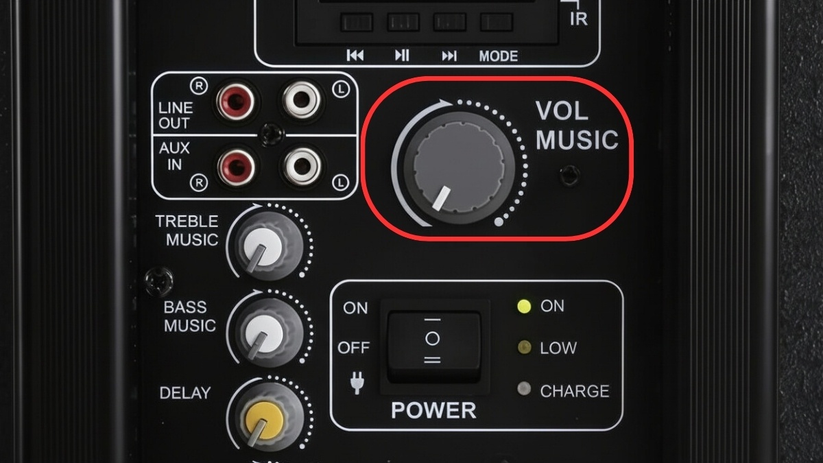 Cách khắc phục loa karaoke lỗi nhanh nhất là hãy rà soát kỹ các núm điều khiển âm lượng như Volume Master, Mic, Music... để đảm bảo chúng không bị đưa về mức 0. Rất nhiều trường hợp loa karaoke không có tiếng thực chất chỉ do người dùng vô tình nhấn nút Mute hoặc vặn thanh trượt Echo/Reverb xuống quá thấp.