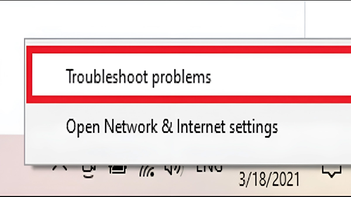 Bước 1: Click chuột phải vào biểu tượng mạng ở góc phải màanjn hình. Sau đó bạn chọn vào 'Troubleshoot problems'.