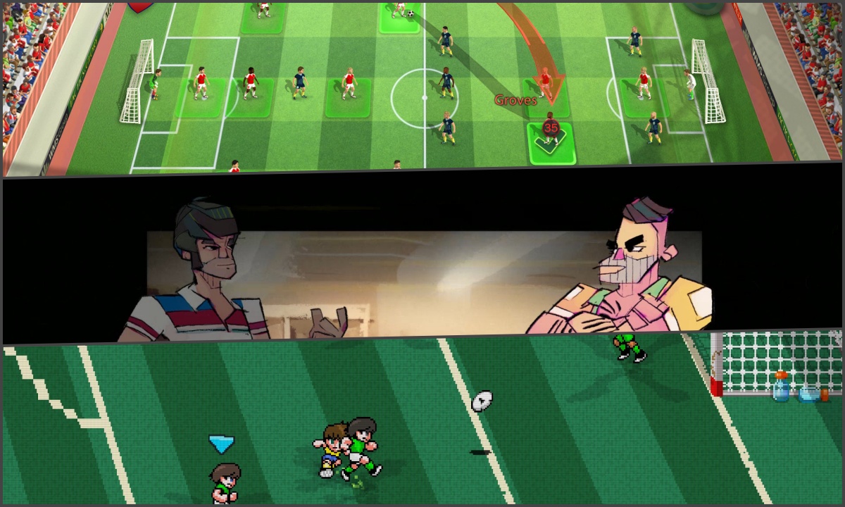 Cụ thể, bạn sẽ thi đấu trên một sân bóng… hình tròn, có những được vạch ghi rõ khoảng cách như thể đang chơi bóng bầu dục và điểm số của bàn thắng được tính theo khoảng cách mà bạn ghi bàn theo kiểu bóng chuyền. Tất cả những gì bạn biết về môn thể thao vua đều không thể được áp dụng vào tựa game này, và điều đó làm cho nó trở nên hết sức thú vị và độc đáo. Game có mặt trên Switch, PC (Mac, Windows).
