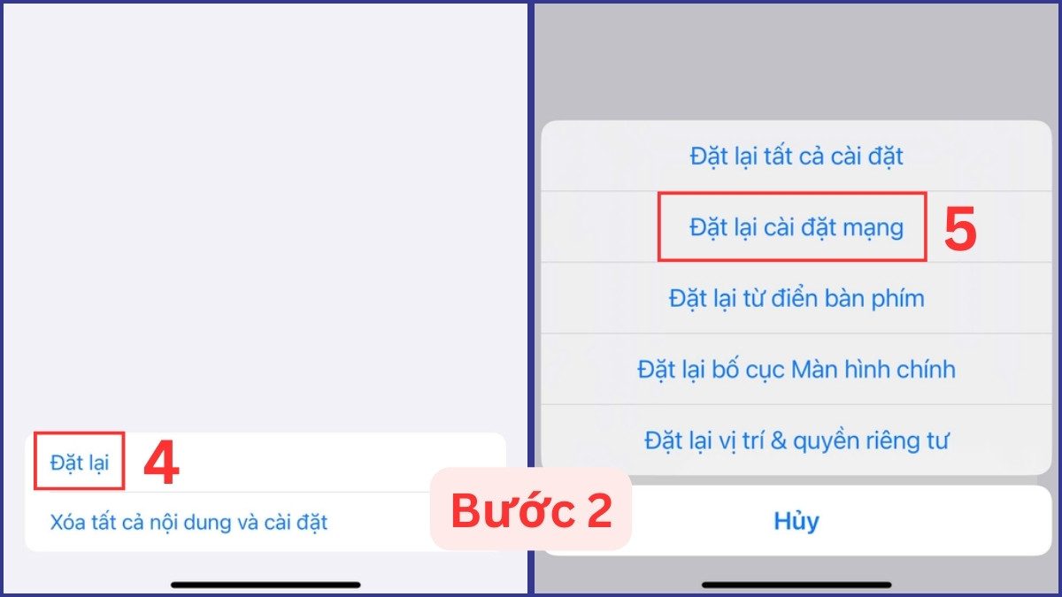 Lưu ý: Các bước đặt lại cài đặt mạng có thể khác nhau ở hệ điều hành và dòng máy, tuy nhiên, các thao tác thực hiện cơ bản đều tương tự.