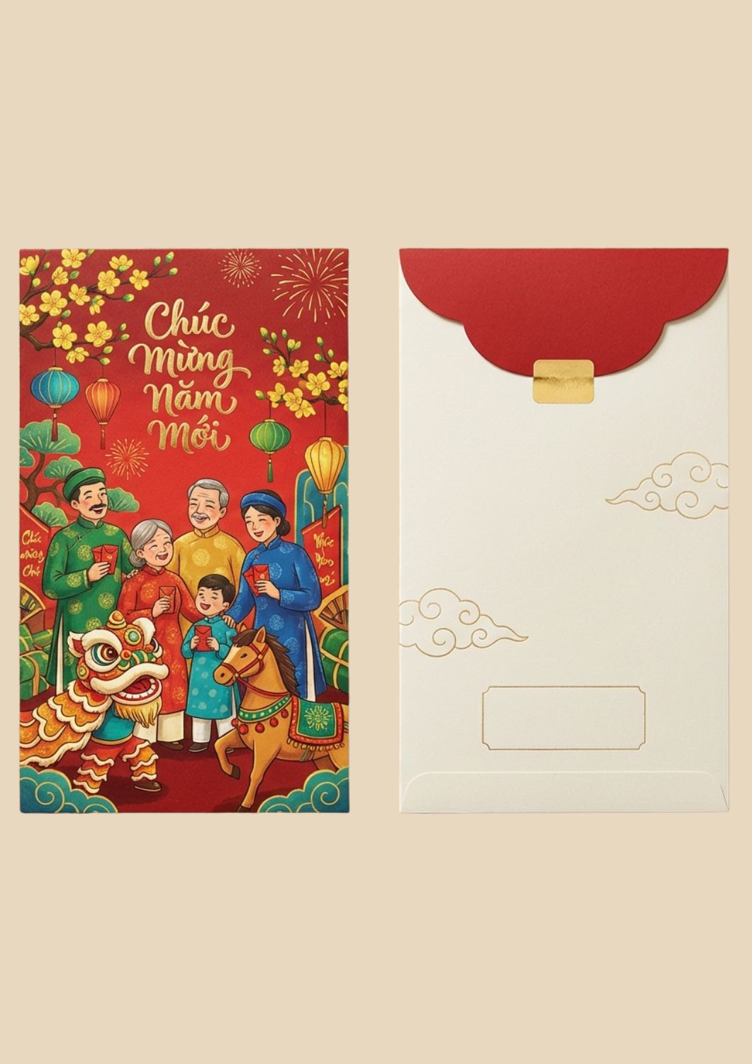 Dù bạn chọn phong cách nào, một mẫu bao lì xì Tết Bính Ngọ 2026 phù hợp sẽ giúp lời chúc năm mới thêm ý nghĩa và may mắn. Hãy chọn những thiết kế đẹp và đúng tinh thần Tết để khởi đầu năm mới thật suôn sẻ và trọn vẹn.
