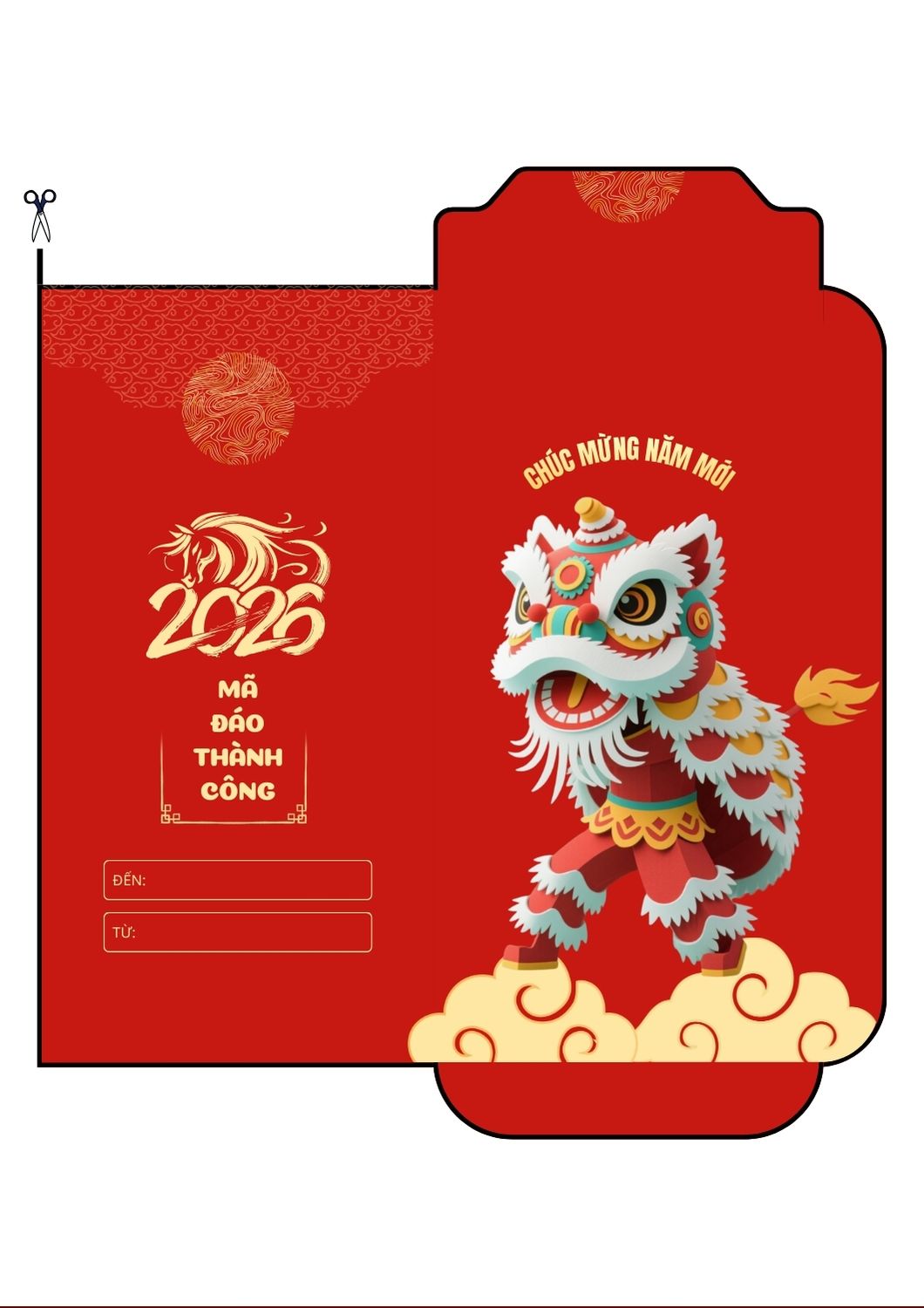 Mẫu bao lì xì Tết Bính Ngọ 2026 hình Lân