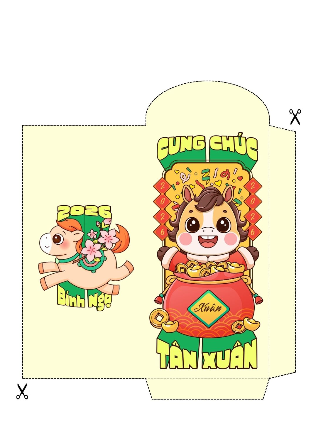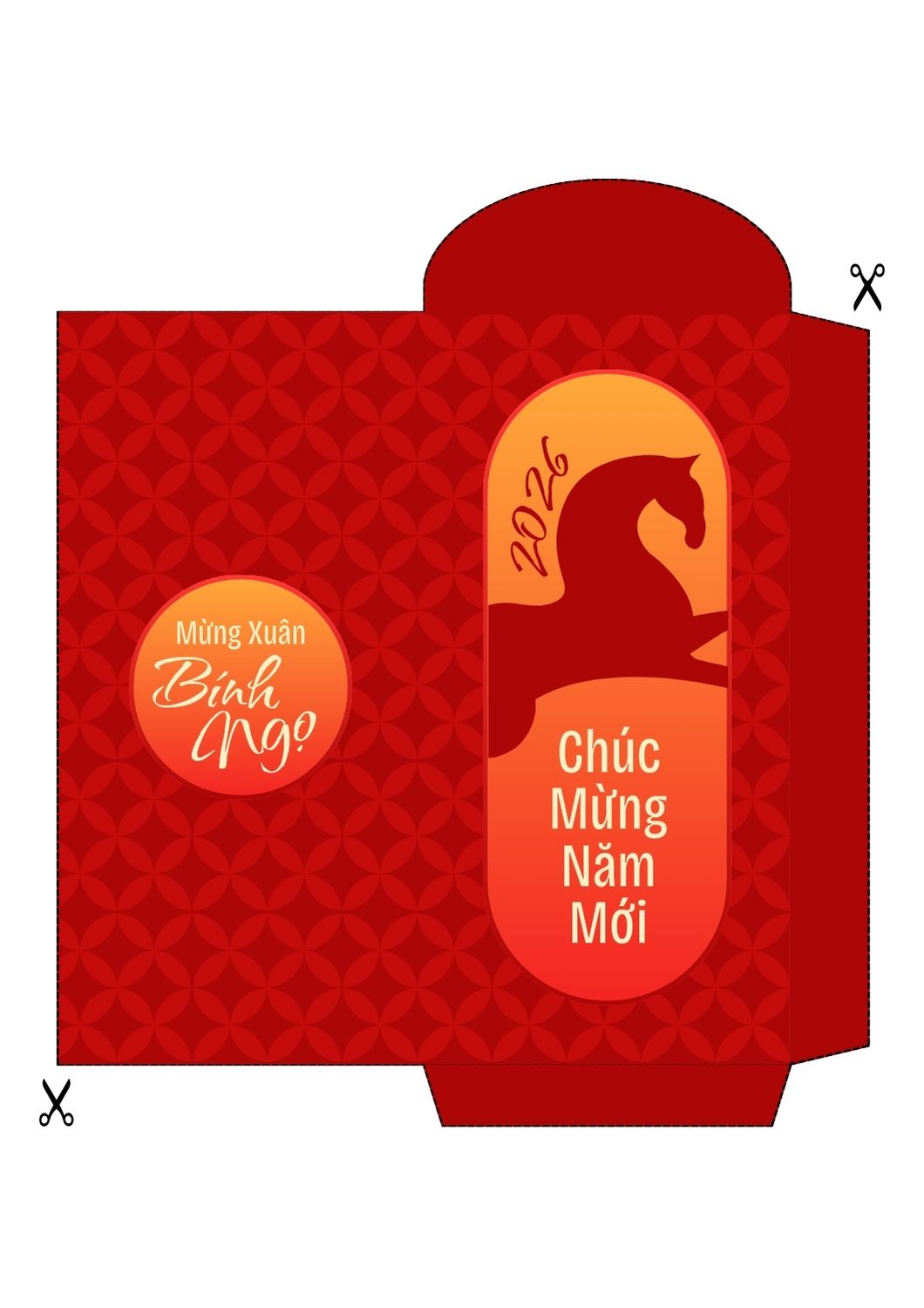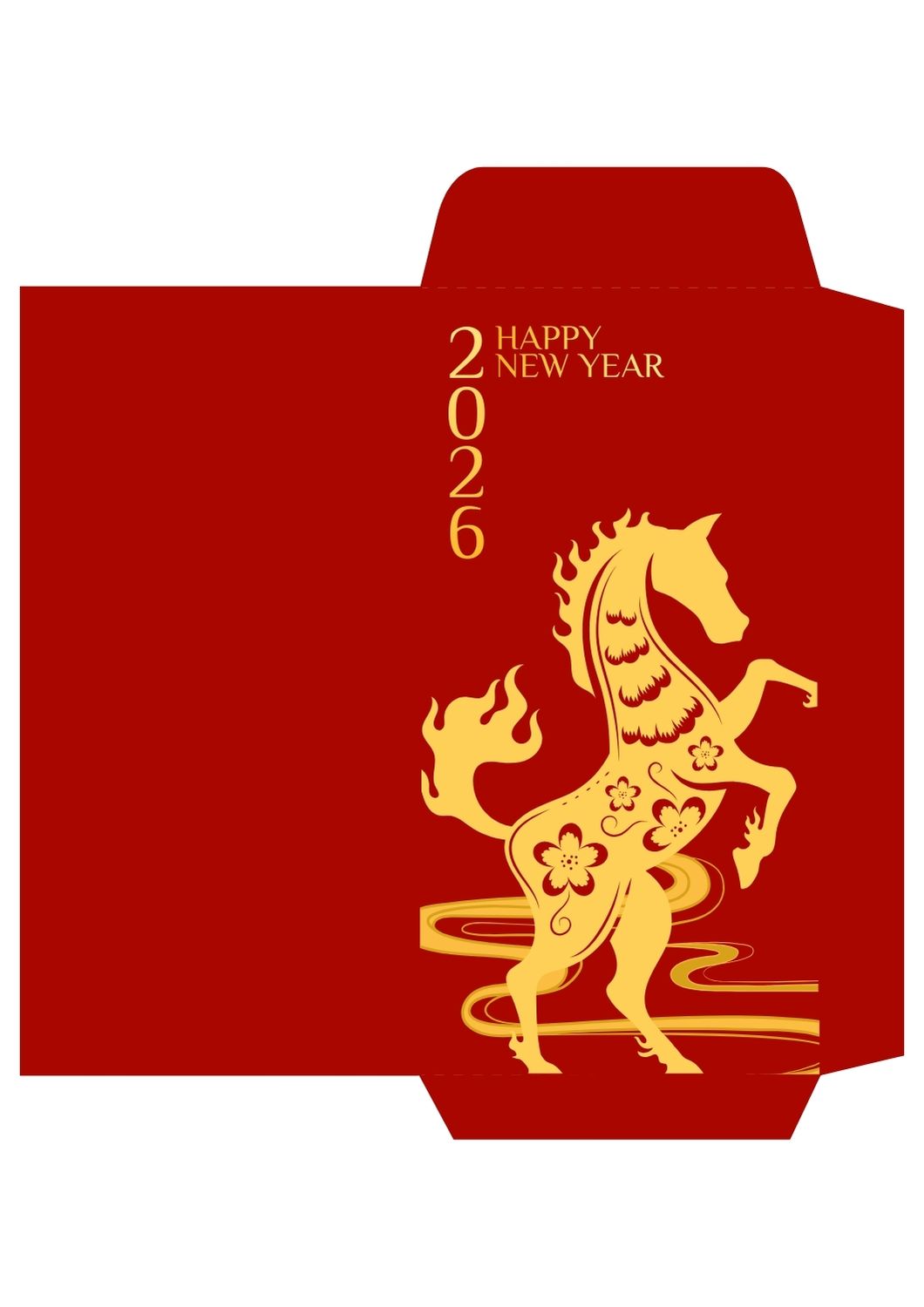 Mẫu bao lì xì Tết Bính Ngọ 2026 hình Ngựa
