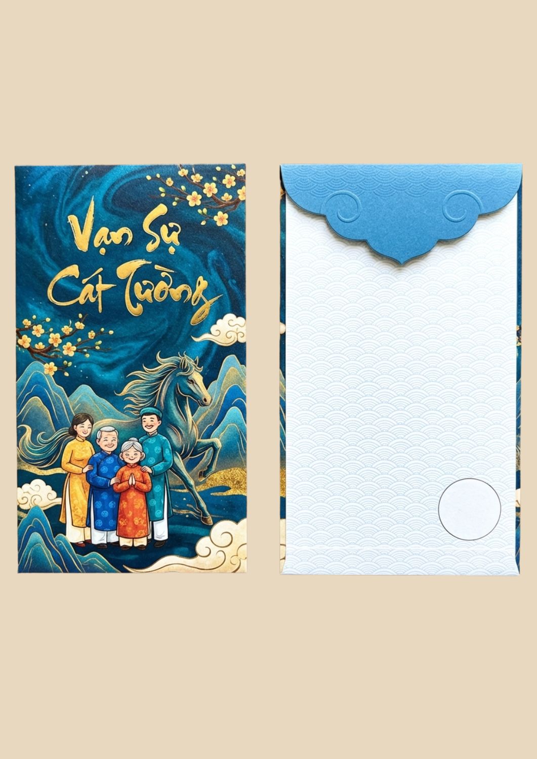 Những mẫu bao lì xì Tết Bính Ngọ 2026 tông xanh Thiên Hà Thủy đặc biệt phù hợp cho quà Tết doanh nghiệp hoặc đối tác, bởi chúng mang lại cảm giác chuyên nghiệp, khác biệt nhưng vẫn mang ý nghĩa phong thủy tốt lành cho năm mới.