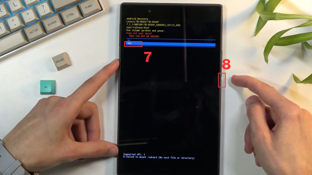 - Tiếp tục dùng nút Âm lượng chọn "Yes" và nhấn nút Nguồn để bắt đầu quá trình xóa dữ liệu.