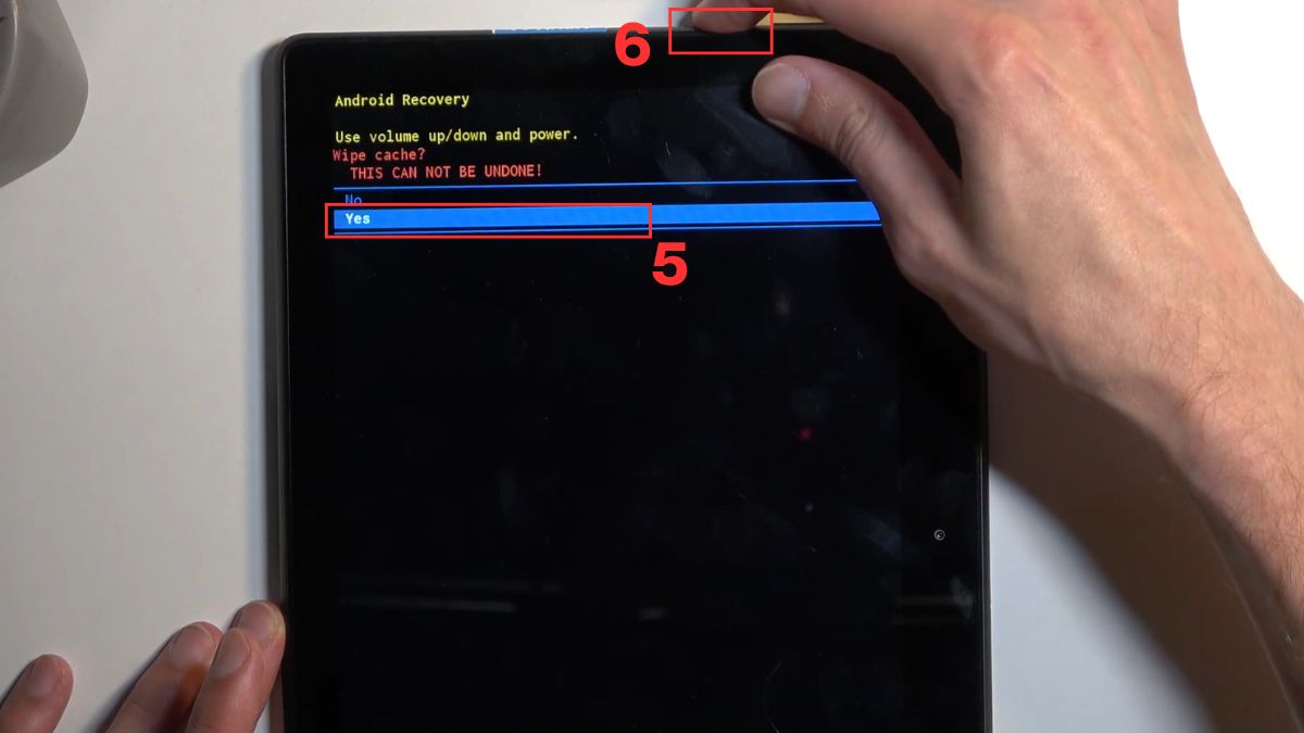 - Bước 4: Tiếp tục dùng nút Âm lượng chọn "Yes" và nhấn nút Nguồn để bắt đầu quá trình xóa dữ liệu.