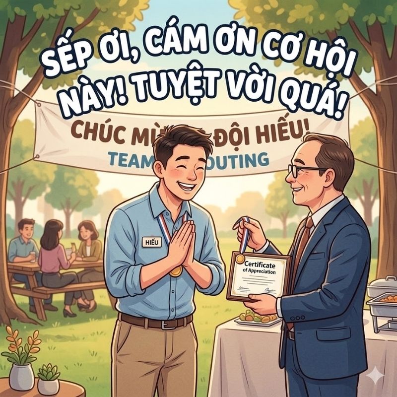 Trong môi trường công việc, nhiều người cũng sử dụng meme để cảm ơn sếp hoặc meme lịch sự để phản hồi khi nhận được sự giúp đỡ từ đồng nghiệp. Những hình ảnh này thường mang phong cách hài nhẹ, vừa thể hiện sự tôn trọng vừa tạo không khí thoải mái.