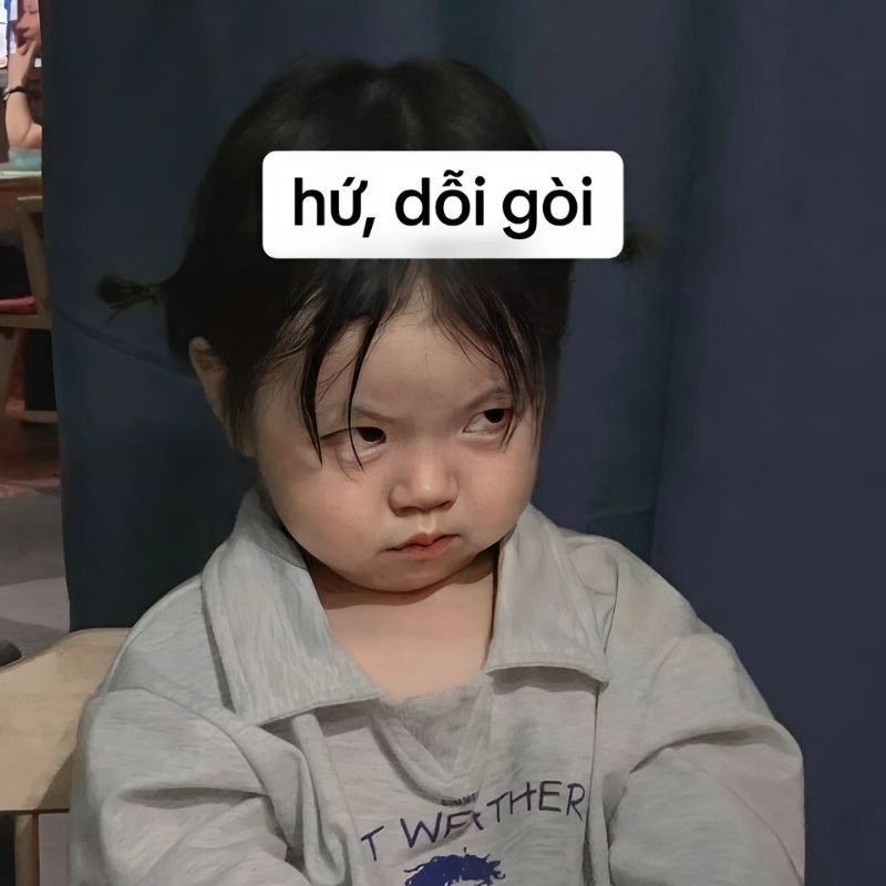 Meme em bé dỗi luôn khiến người xem cảm thấy vừa buồn cười vừa đáng yêu. Những biểu cảm phụng phịu, khoanh tay hoặc quay mặt của em bé thường được kết hợp với câu chữ hài hước để tạo nên meme cực kỳ viral.