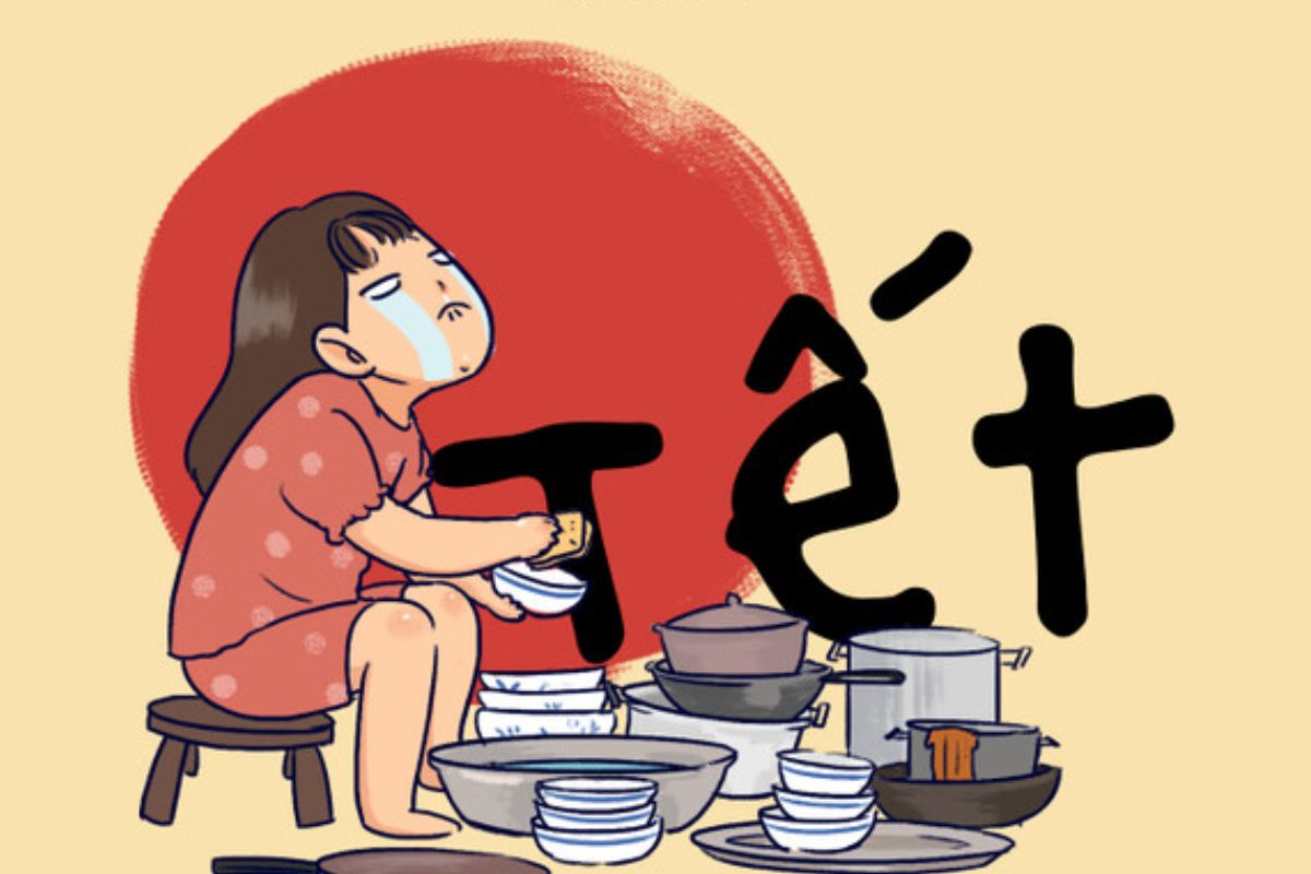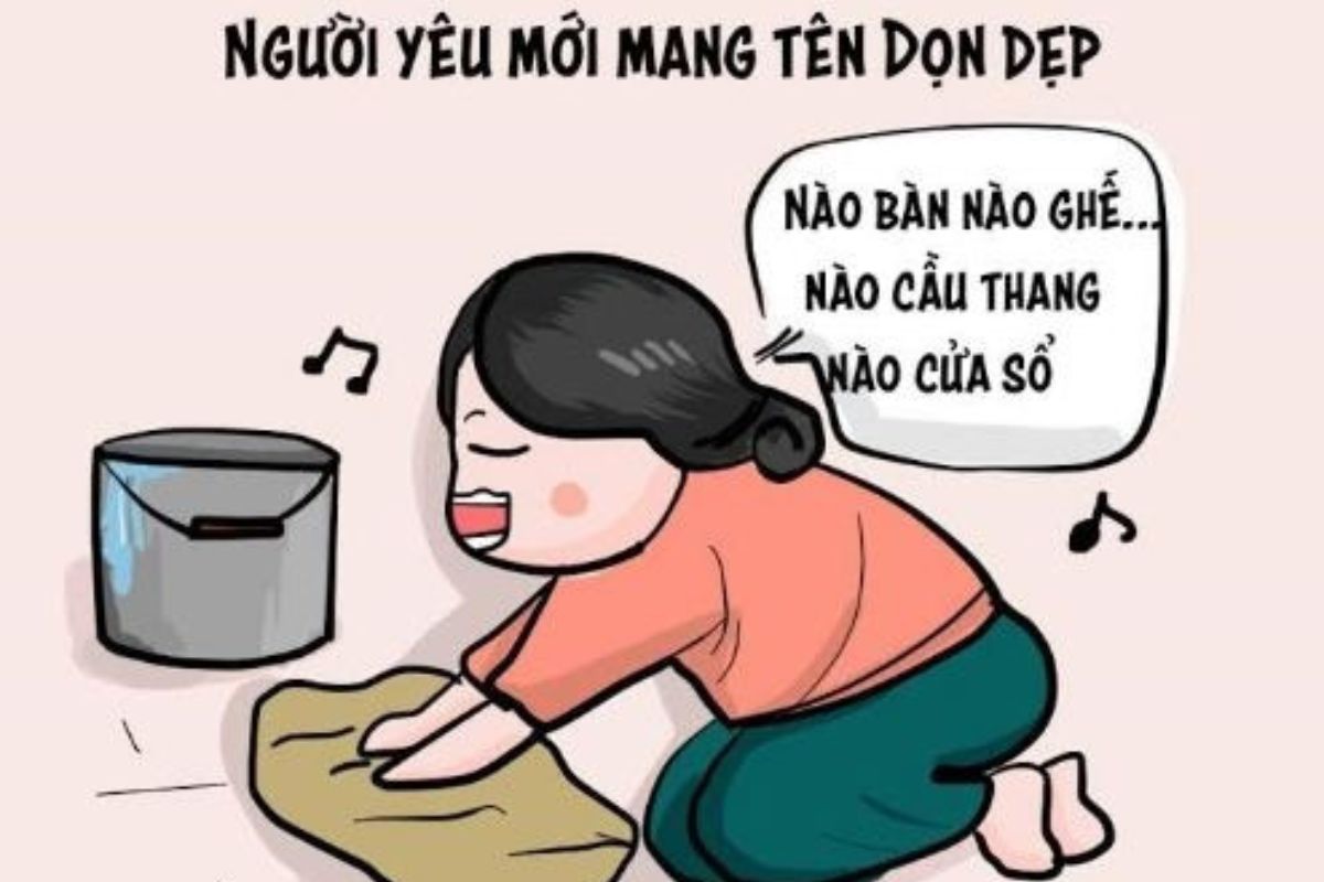 Loạt ảnh chế về việc lau chùi bộ bàn ghế chạm trổ, leo trèo quét mạng nhện hay rửa cả núi bát đĩa ngày tất niên luôn khiến người xem gật gù đồng cảm. Những chiếc meme Tết này như một lời than thở chung của phận con cái trong nhà, biến sự mệt mỏi thành những tràng cười sảng khoái.