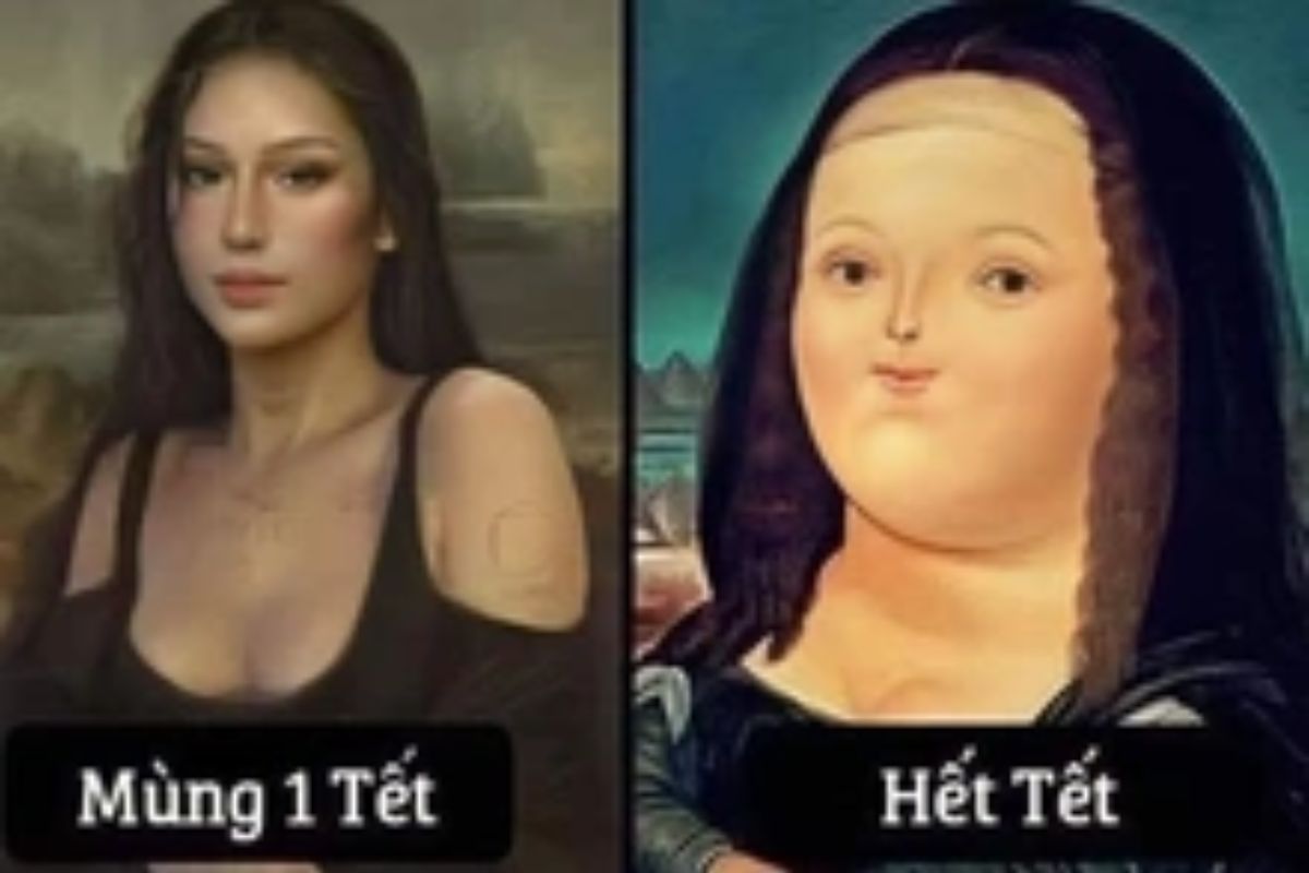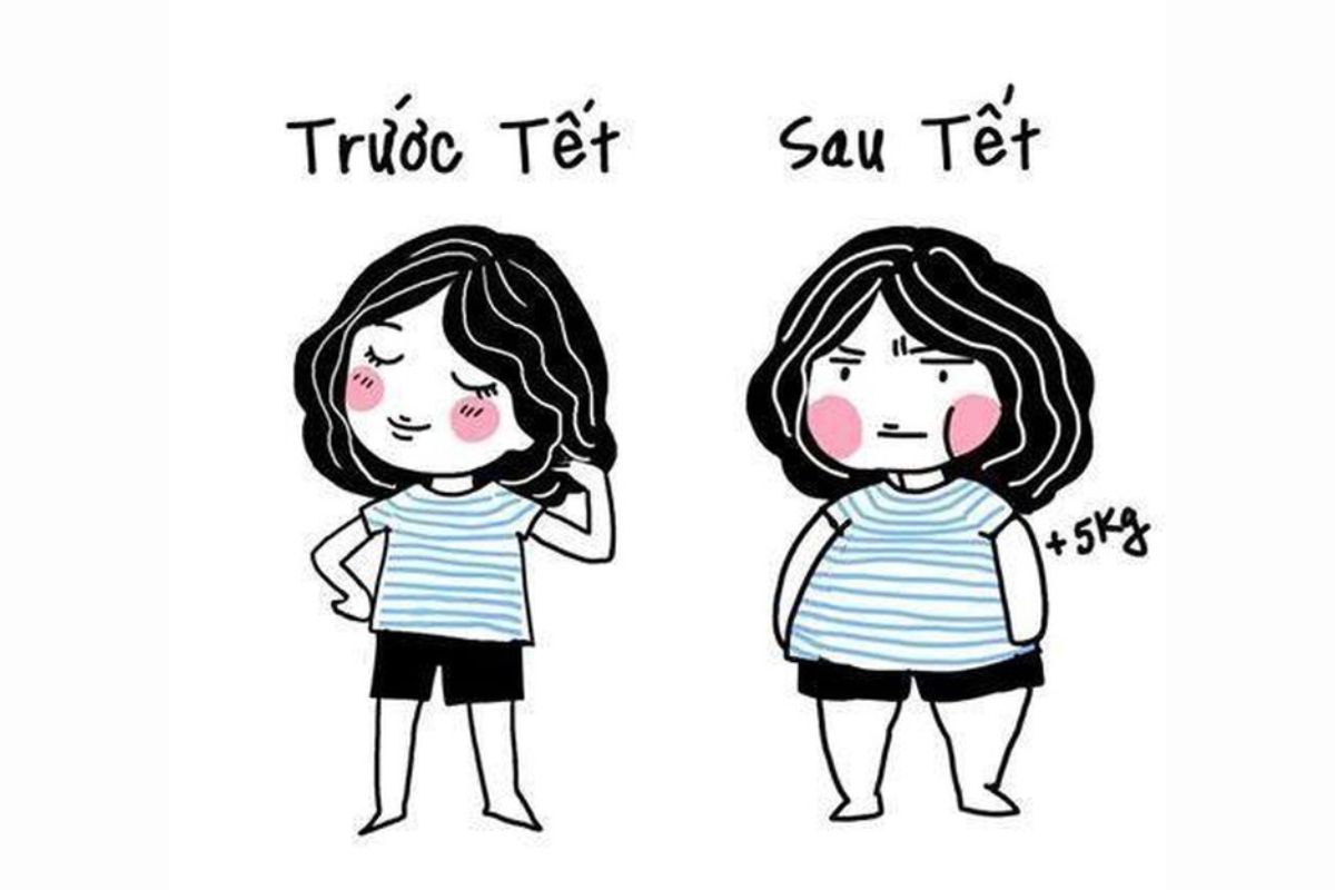 Sau những ngày ăn uống thả ga là nỗi lo về cân nặng. Các hình ảnh so sánh "trước Tết - sau Tết" với body tròn quay hay những chú mèo béo ú nuốt chửng đòn bánh chưng luôn là chủ đề hot. Đây là cách tự trào phúng về việc không thể kiểm soát cái miệng trước mâm cỗ đầy ắp giò chả, thịt kho.
