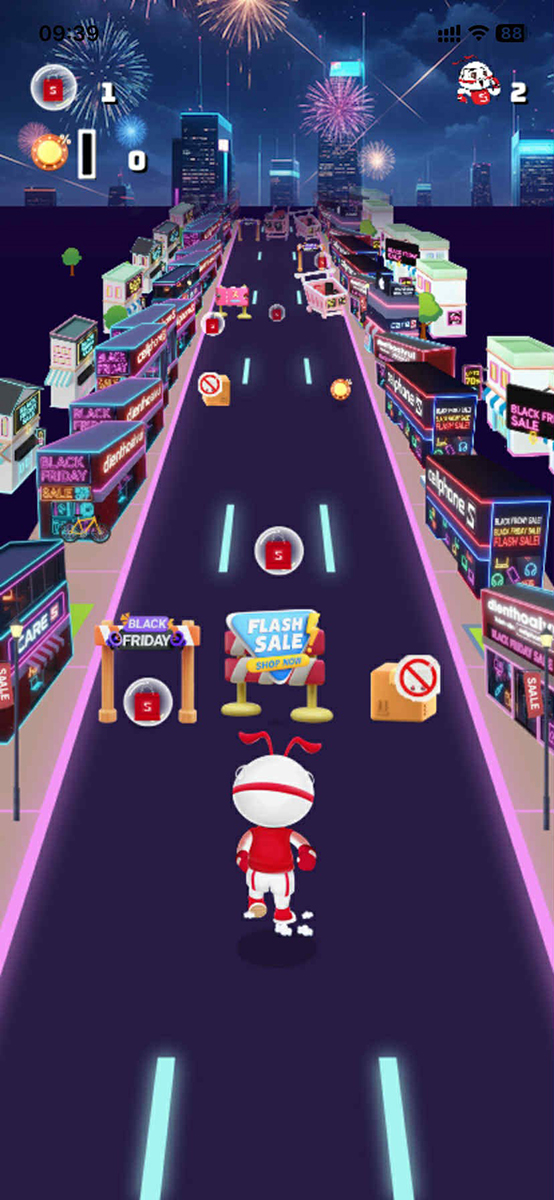 - Khách hàng điều khiển nhân vật Kiến S-Ant lần lượt vượt qua các chướng ngại vật và thu thập Túi CellphoneS để tăng điểm. Nếu vượt các mốc điểm cố định, người chơi sẽ nhận được voucher giảm giá hấp dẫn dùng trong dịp Black Fire-Day và cơ hội tham gia quay số trúng iPhone 17.