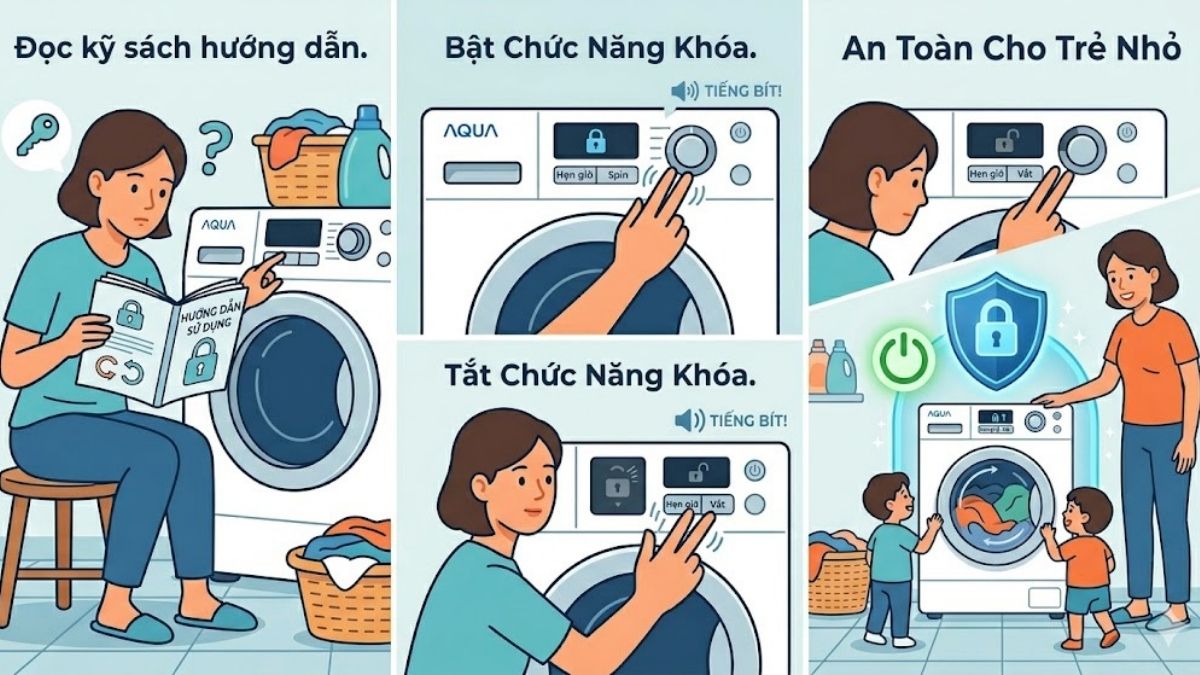 Cách sử dụng tính năng khóa trẻ em máy giặt Aqua hiệu quả