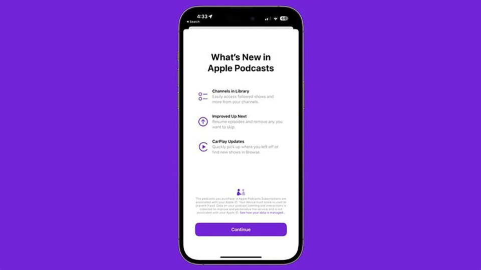 Có một màn hình Splash Screen mới trong ứng dụng Podcasts trong phiên bản iOS 16.4 beta 2, giải thích những thay đổi mới.