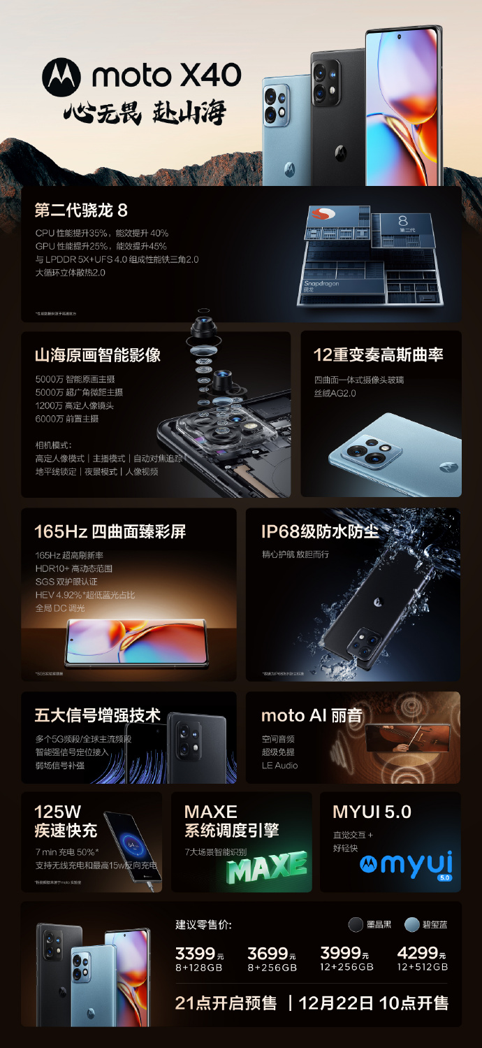 Moto X40 sở hữu thông số kĩ thuật hàng đầu hiện nay và là đối thử của các sản phẩm cao cấp khác như Xiaomi 13, iQOO 11 và Vivo X90.