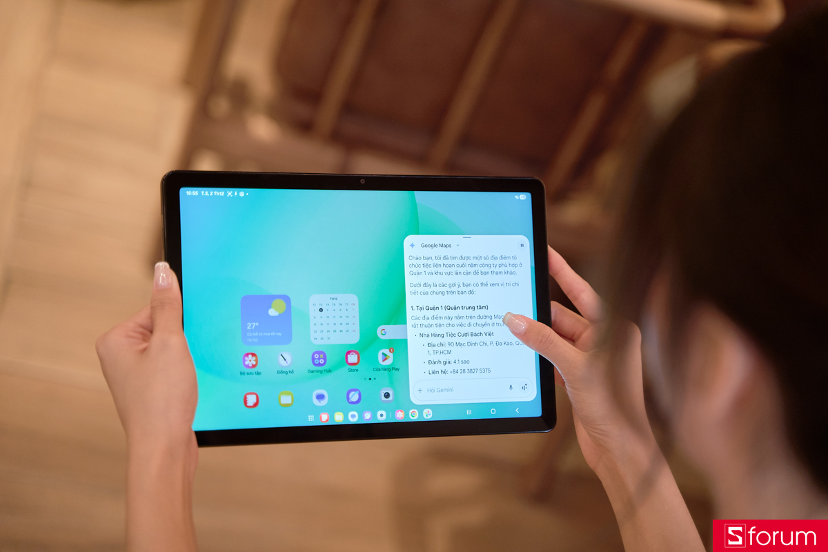 Và tin đồn đó đã trở thành sự thật khi Tab A11+ đã xuất hiện với bộ tính năng AI tiên tiến, nổi bật với trợ lý Gemini. Chính vì vậy mà bạn có thể trò chuyện, đặt câu hỏi hay yêu cầu hỗ trợ chỉ bằng những câu lệnh đơn giản. Chỉ cần nói “Hey Google”, tablet sẽ lập tức phản hồi và thực hiện theo ý bạn, trải nghiệm điều khiển thiết bị trở nên nhanh gọn và tiện lợi hơn bao giờ hết.