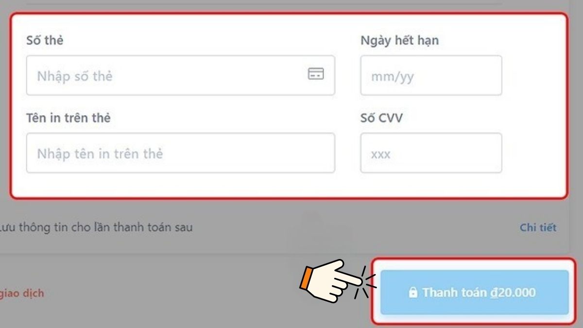 Bước 3: Chọn ngân hàng mà bạn đang sử dụng. Hệ thống sẽ chuyển đến liên kết ngân hàng tương ứng. Điền đầy đủ thông tin thẻ như số thẻ, tên, ngày hết hạn, số CVV theo yêu cầu. Sau đó, nhấn thanh toán để hoàn thành giao dịch.