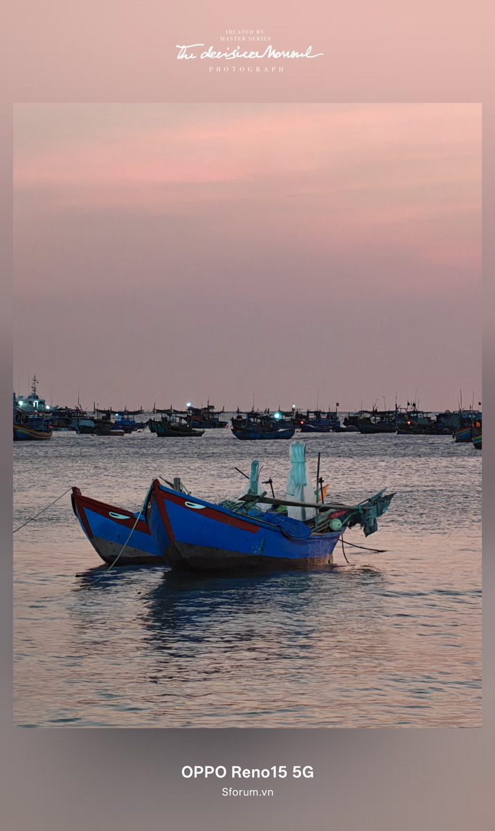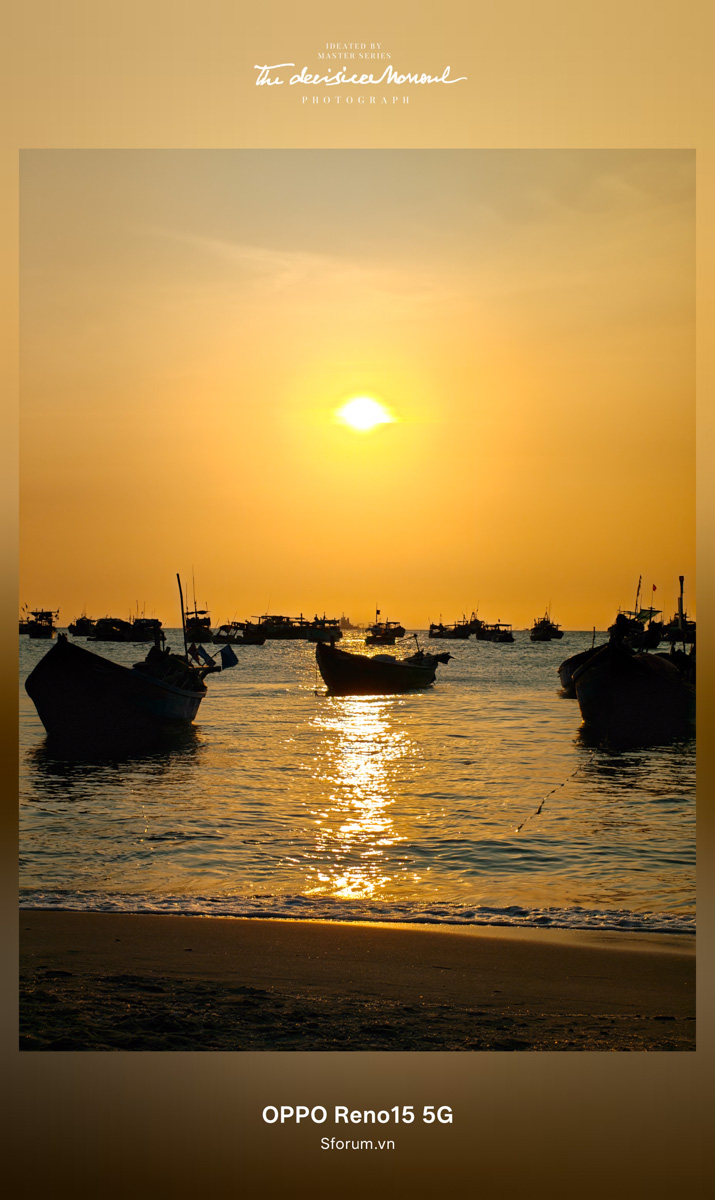 Những tông màu sắc đậm đà của ghe tàu hay ánh vàng hồng của hoàng hôn được thu lại trọn vẹn bởi ống kính của OPPO Reno15.
