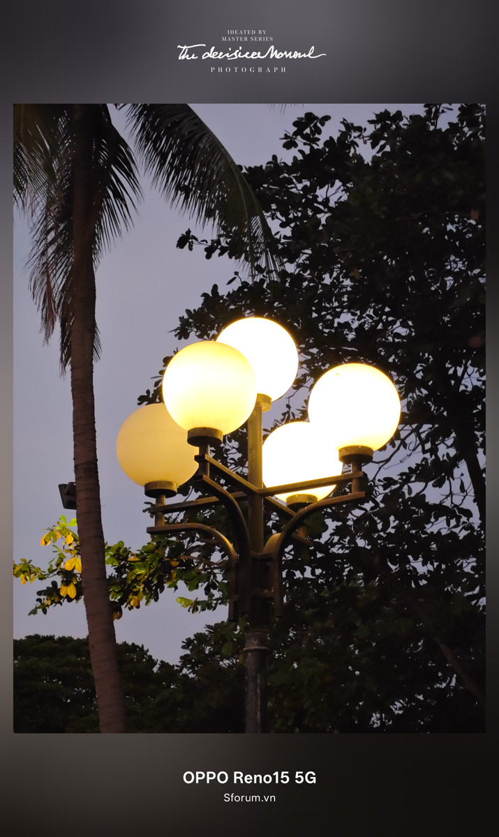Lúc này do trời đã khá tối, việc có thể chụp được những bức hình có độ chi tiết tốt đã khó hơn nhiều. Tuy vậy mình vẫn khá ấn tượng với độ chi tiết khi chụp thiếu sáng trên OPPO Reno15, đặc biệt khi kể đến hoạ tiết gạch dưới mặt đất hay những đường gần trên thân cây.